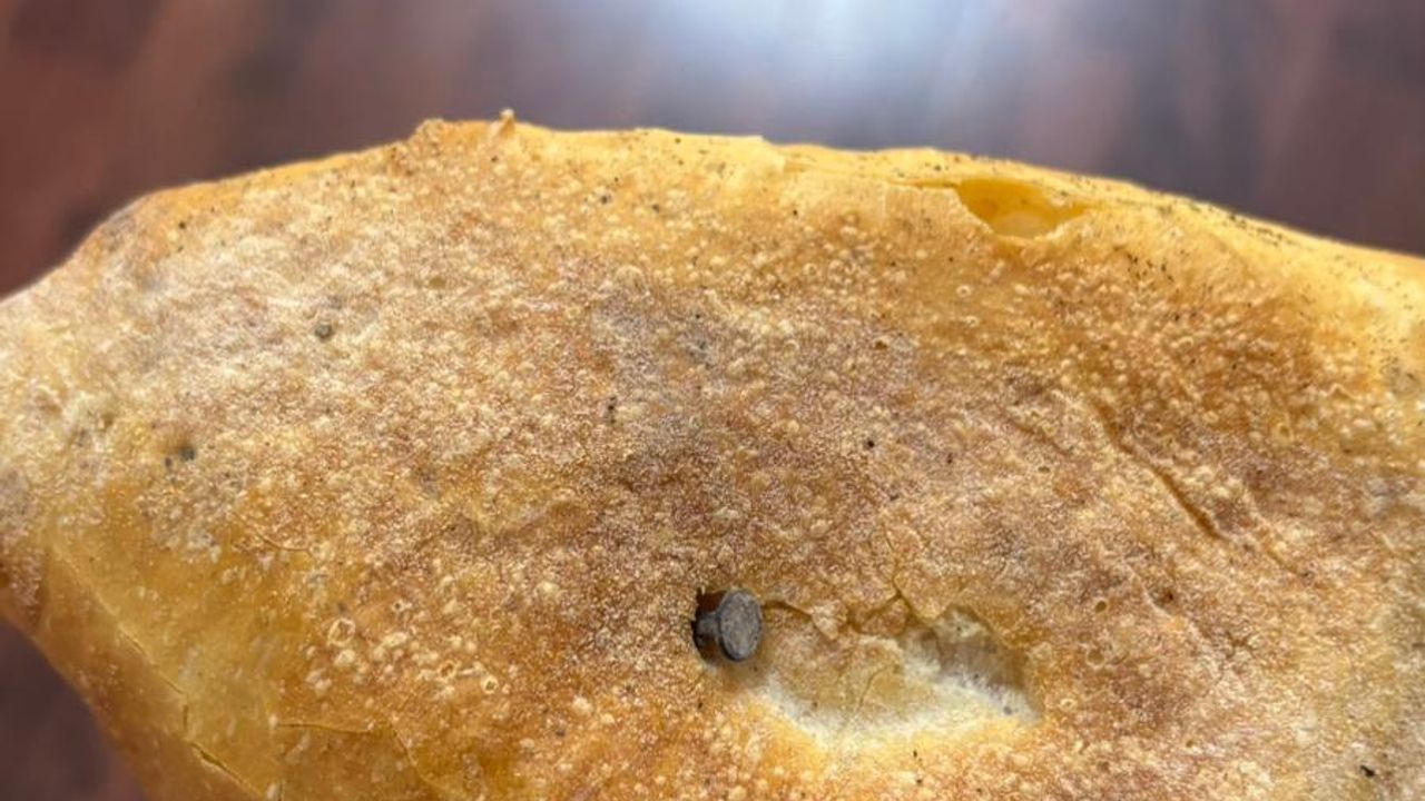İddiaya göre, fırından ekmek alan vatandaş, eve geldikten sonra ekmeği yiyeceği sırada içinde çivi olduğunu fark etti. Gördüğü manzara karşısında neye uğradığını şaşıran vatandaş, durumu cep telefonu kamerasıyla görüntüledi.