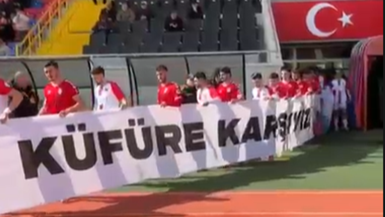 Tribünlerden alkış alan pankartla futbolcular, sahalarda küfür ve şiddete karşı farkındalık oluşturmayı amaçlıyor.