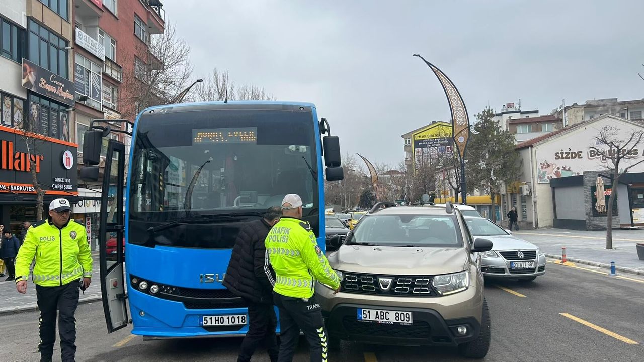 Niğde’de Cumhuriyet Meydanı’nda, tarihi Niğdelioğulları İşletmesi önünde otomobil ile Niğde Belediyesi’ne ait şehir içi halk otobüsü çarpıştı. Sürücülerin dikkatsizliği sonucu meydana geldiği belirtilen kazanın ihbar edilmesi üzerine olay yerine polis ekipleri sevk edildi. Kazada yaralanan olmazken, polis ekiplerince olay yerinde inceleme başlatıldı.