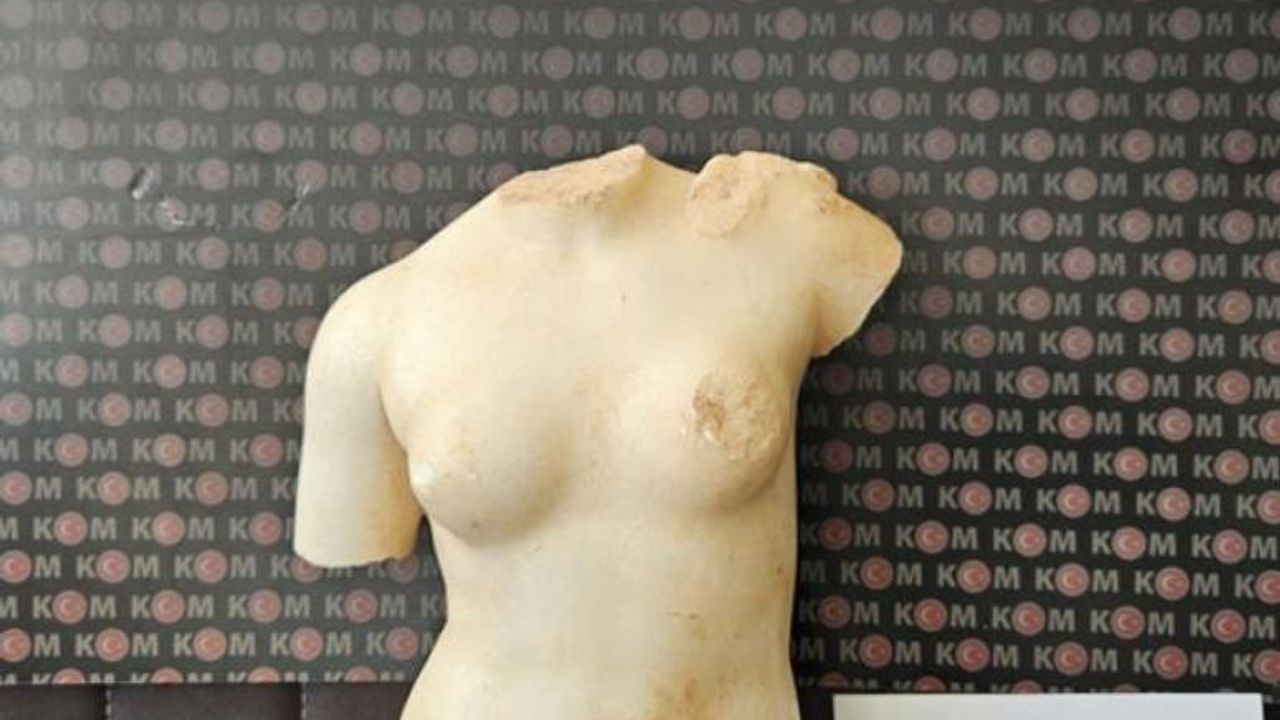 NİĞDE'de polisin düzenlediği operasyonda Roma dönemine ait, başı, kolları ve bacakları kırılmış kadın heykeli ele geçirildi; 1 kişi gözaltına alındı.