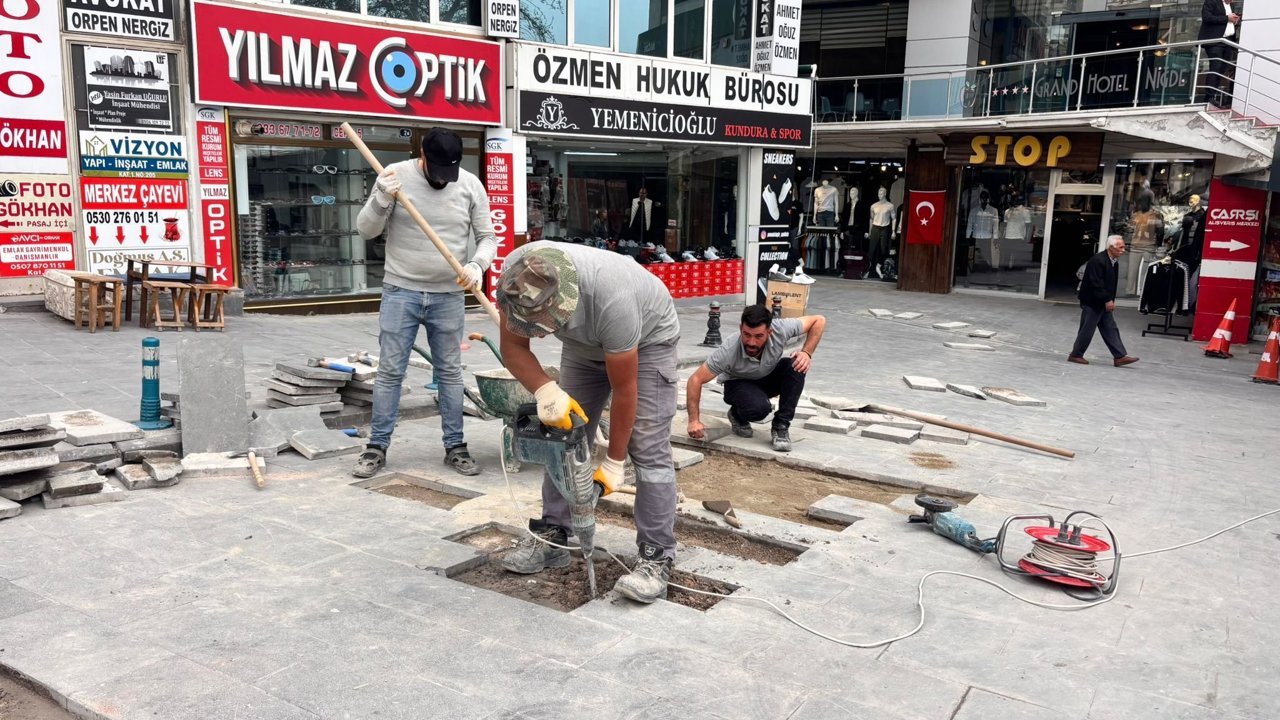 Niğde’de, Kuyumcular Caddesi’nde hasar gören kaldırımlar belediye ekiplerince yenileniyor.