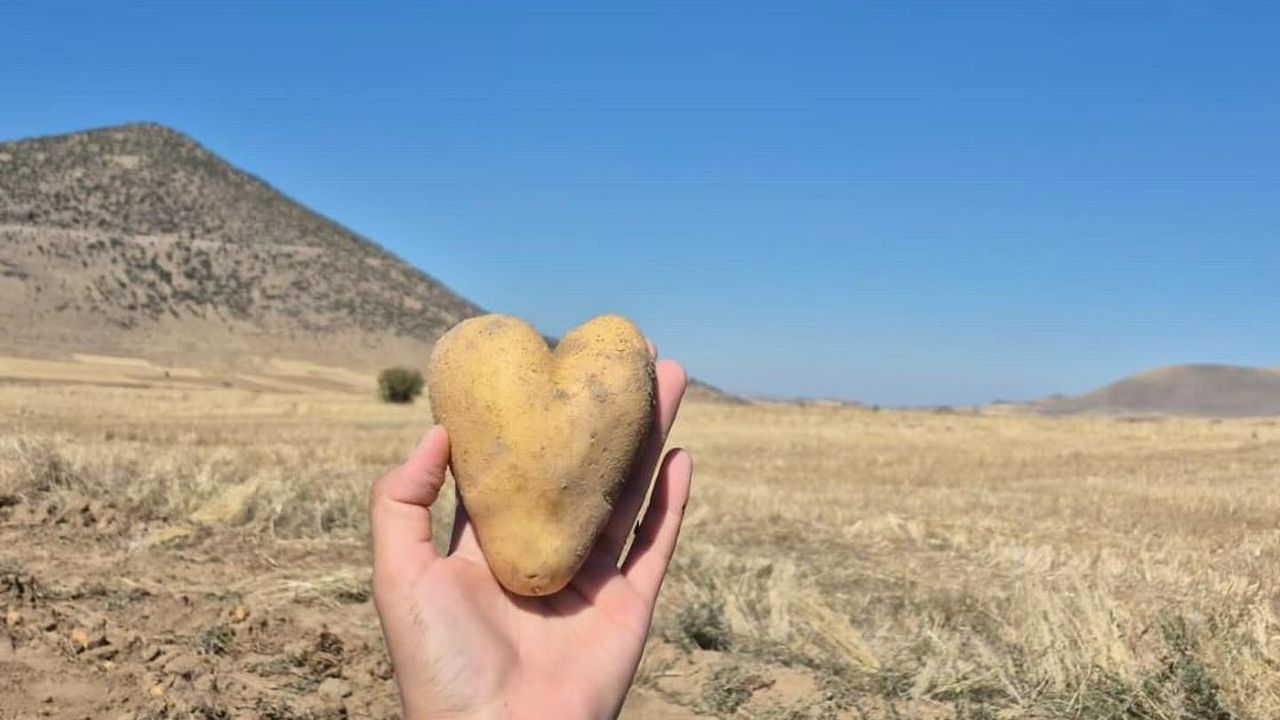 Niğde’de devam eden patates hasadı sırasında çiftçilerden biri, kalp şeklinde büyümüş bir patates buldu. Doğal olarak oluşan bu nadir şekil karşısında şaşkınlığını gizleyemeyen çiftçi, hasadın sürprizlerle dolu olduğunu söyledi. Çiftçi, “Böyle bir patatesi ilk defa görüyorum. Doğanın bazen ne sürprizler yapacağını bilemiyoruz” dedi.