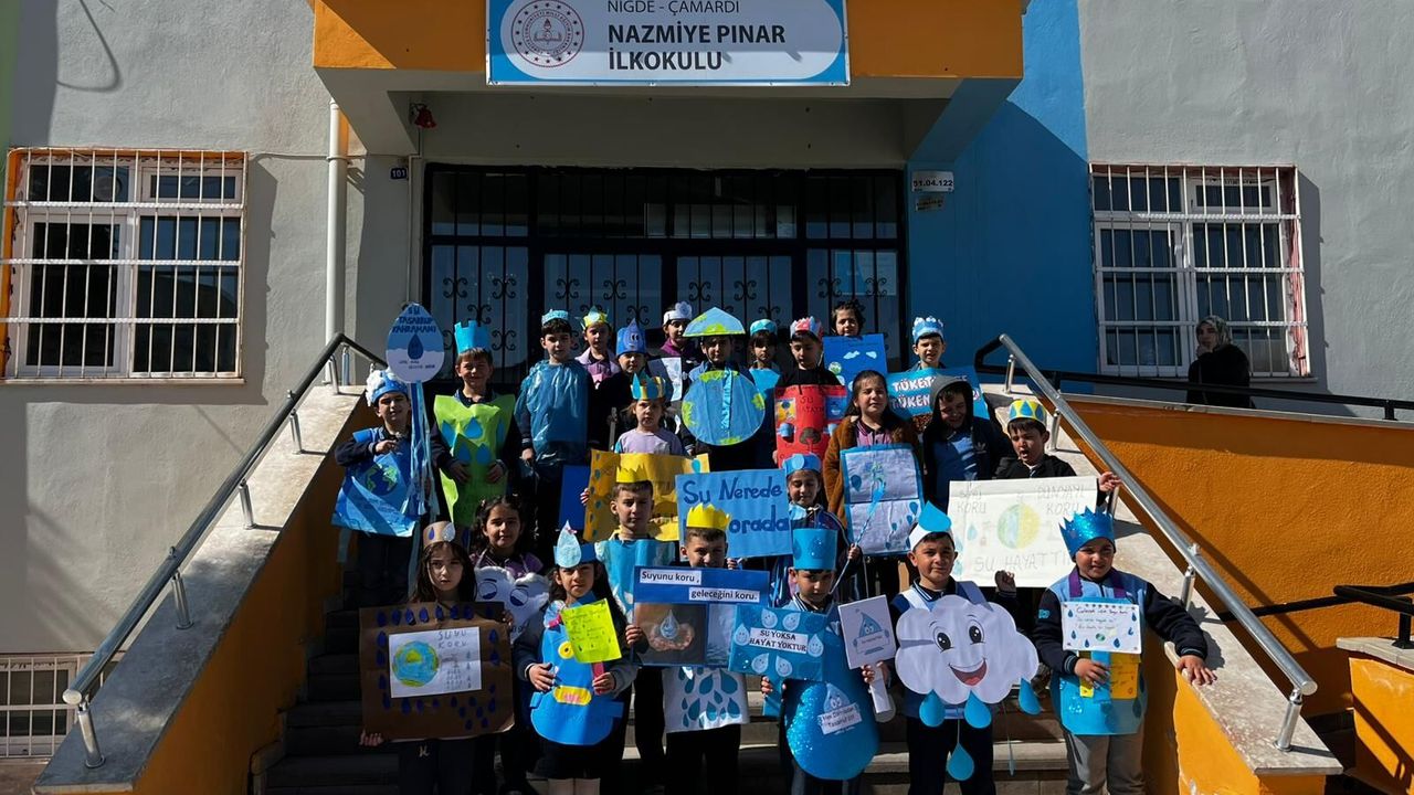 Nazmiye Pınar İlkokulu 1/B sınıfı öğrencileri, Çamardı ilçesinde vatandaşlara su verimliliği ve tasarrufu konusunda bilgilendirme yaptı. Niğde’nin Çamardı ilçesinde Nazmiye Pınar İlkokulu 1/B sınıfı öğrencileri, su verimliliğine dikkat çekmek amacıyla farkındalık etkinliği düzenledi. Türkiye Yüzyılı Maarif Modeli’nin “Köklerden Geleceğe” yaklaşımı doğrultusunda yürütülen “Yeşil Vatan – Benim Okulum Geleceğe Çare” etkinlikleri kapsamında gerçekleştirilen programda, Mart ayının teması olan “Su Verimliliği” ele alındı. Etkinlik kapsamında öğrenciler, öğretmenlerinin rehberliğinde Çamardı ilçesi pazar yerinde vatandaşlarla bir araya geldi. Hazırladıkları afişler ve bilgilendirici materyallerle suyun bilinçli kullanımı, tasarruf yöntemleri ve su kaynaklarının korunmasının önemi hakkında bilgi verdi. Minik öğrenciler, suyun yaşam için vazgeçilmez bir kaynak olduğunu vurgulayarak günlük hayatta alınabilecek basit tasarruf önlemlerini anlattı. Vatandaşların ilgi gösterdiği etkinlikte hem öğrenciler hem de vatandaşlar için farkındalık oluşturuldu. Nazmiye Pınar İlkokulu yönetimi, öğrencilerin çevre bilinci yüksek ve sorumluluk sahibi bireyler olarak yetişmesine katkı sağlayan bu tür etkinliklerin ilerleyen süreçte de devam edeceğini belirtti.