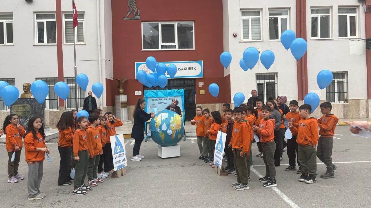 Niğde Necip Fazıl Kısakürek İlkokulu öğrencileri tarafından “Su Farkındalığı” etkinliği gerçekleştirildi. Etkinlik kapsamında temsili balonlar su damlacıklarını simgelerken, öğrencilerin su konusundaki bilgileri dünya küresi ile ilişkilendirildi.
