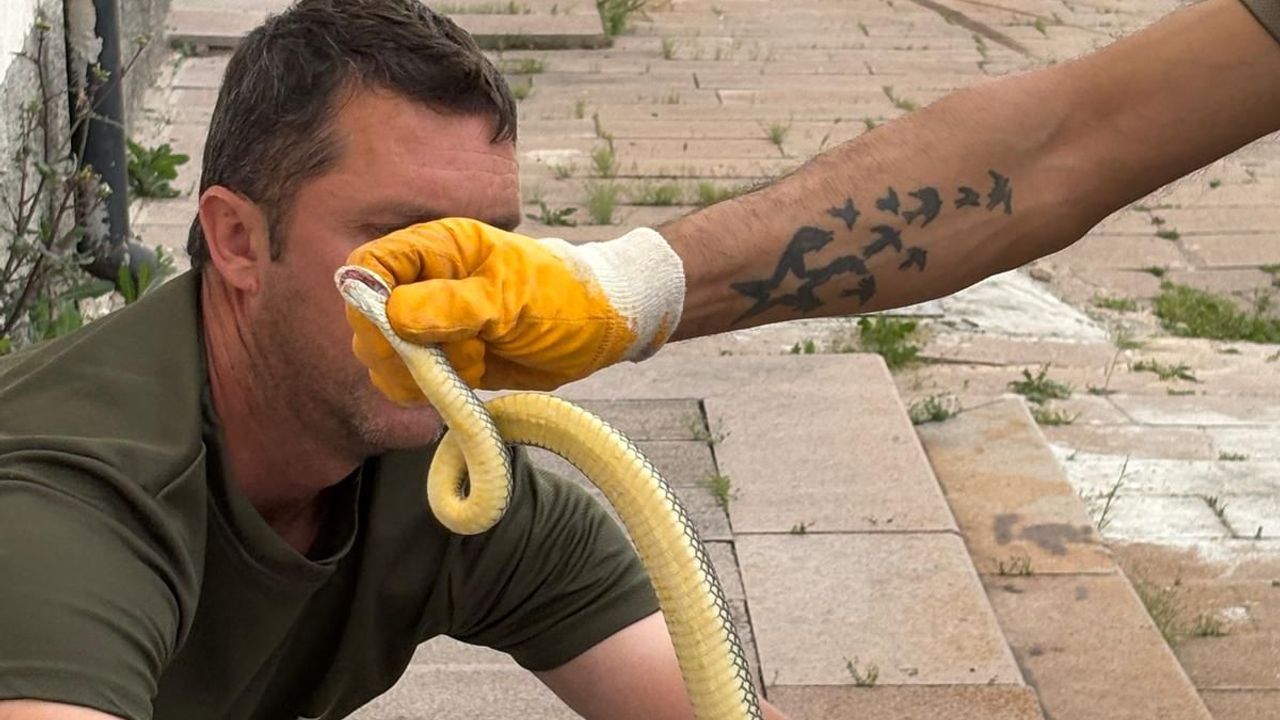 Ekipler, yılanı zarar vermeden yakalayarak doğal ortamına bıraktı.
