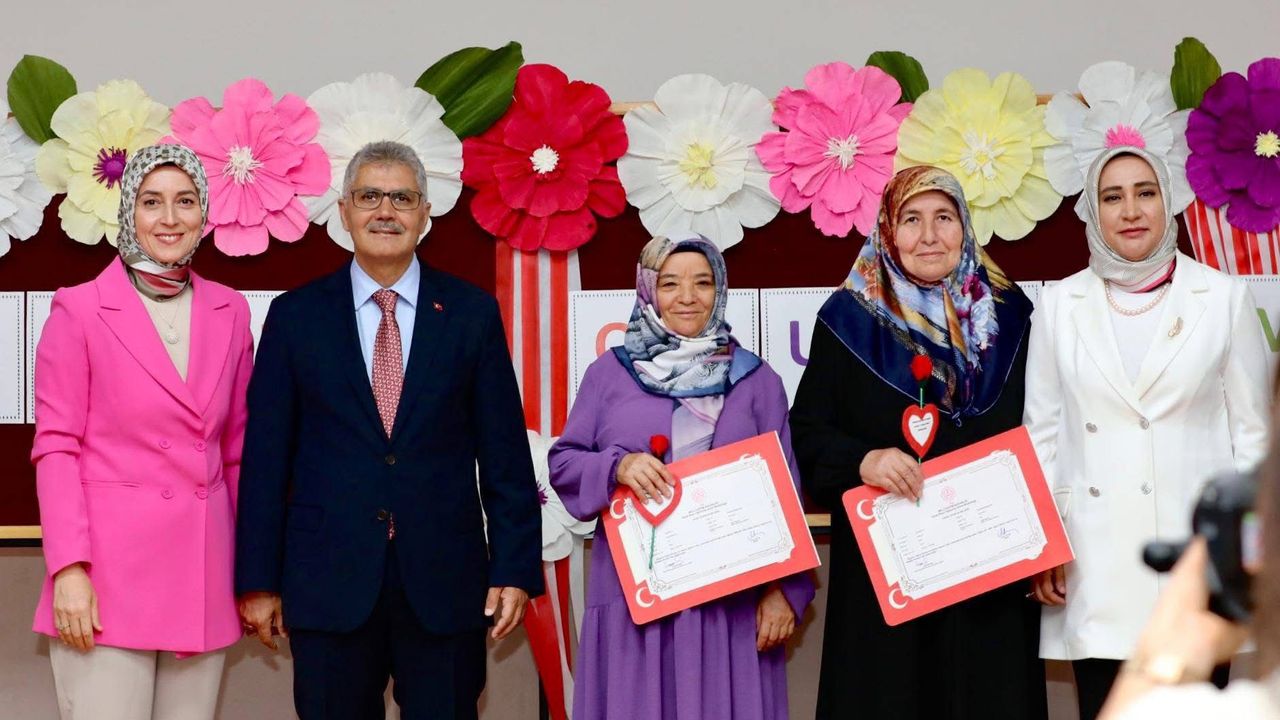 Niğde Valisi Cahit Çelik ve eşi Nermin Çelik, Niğde Halk Eğitimi Merkezi tarafından düzenlenen Yetişkin Okuma-Yazma Kursu’nu başarıyla tamamlayan kursiyerler için İnci Kadıoğlu Anaokulu’nda düzenlenen sertifika törenine katıldı.