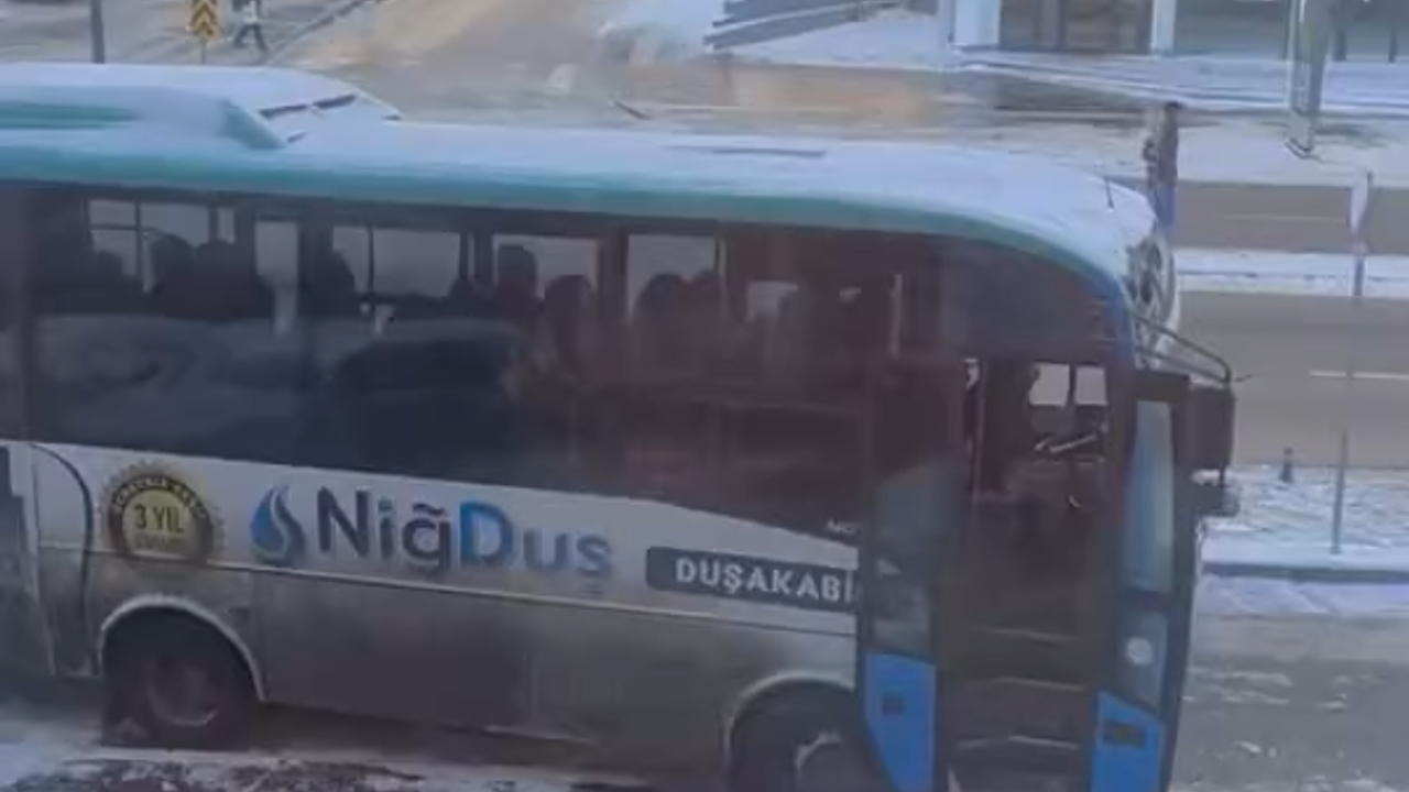 Niğde’de Doktor Sami Yağız Caddesi üzerinde, içerisinde yolcuların bulunduğu şehir içi halk otobüsü durağa yanaştığı sırada buzlanma nedeniyle kayarak trafik işaret levhasına çarptı.