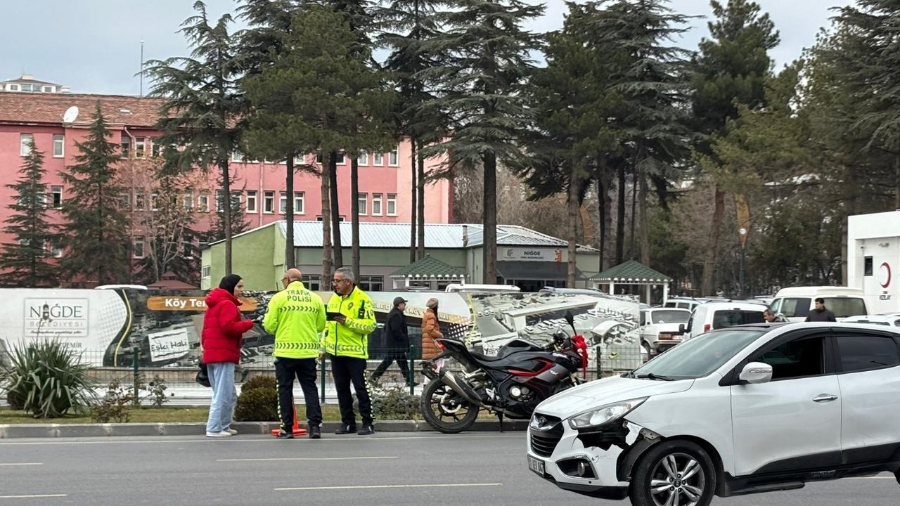 Niğde’de kırmızı ışıkta duran motosiklete arkadan gelen otomobil çarptı.