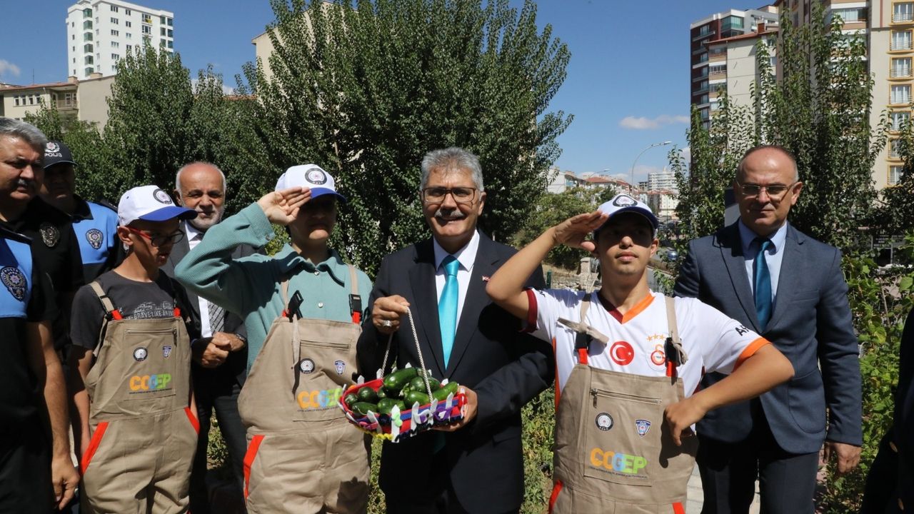 İl Milli Eğitim Müdürlüğü ile İl Emniyet Müdürlüğü iş birliğiyle oluşturulan hobi bahçesinde düzenlenen etkinlikte öğrencilerle birlikte hasada katılan Vali Çelik, çocukların sevincine ortak oldu.