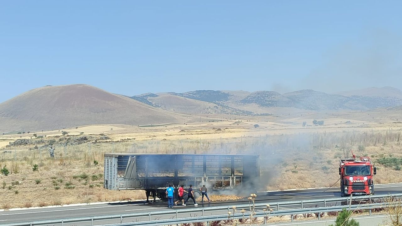 Niğde-Ankara otoyolu Gösterge Köyü yakınlarında seyir halindeki patates yüklü bir tırın dorsesinde yangın çıktı.