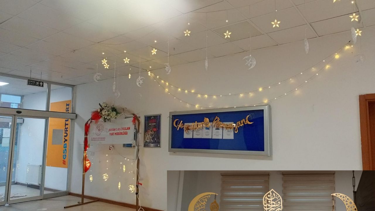 Niğde Gençlik ve Spor İl Müdürlüğüne bağlı Sultan 1. Kılıçarslan Kız KYK Yurdu’nda Ramazan ayı dolayısıyla yurt yönetimi ve öğrenciler tarafından hazırlıklar yapıldı. Yurt binasının ortak alanları ışıklarla süslendi. Tavanlara yıldız ve hilal figürleri asıldı, duvar panoları Ramazan temalı dekorlarla düzenlendi. Gerçekleştirilen çalışmalarla birlikte yurtta Ramazan ayının manevi atmosferine uygun bir ortam oluşturuldu.