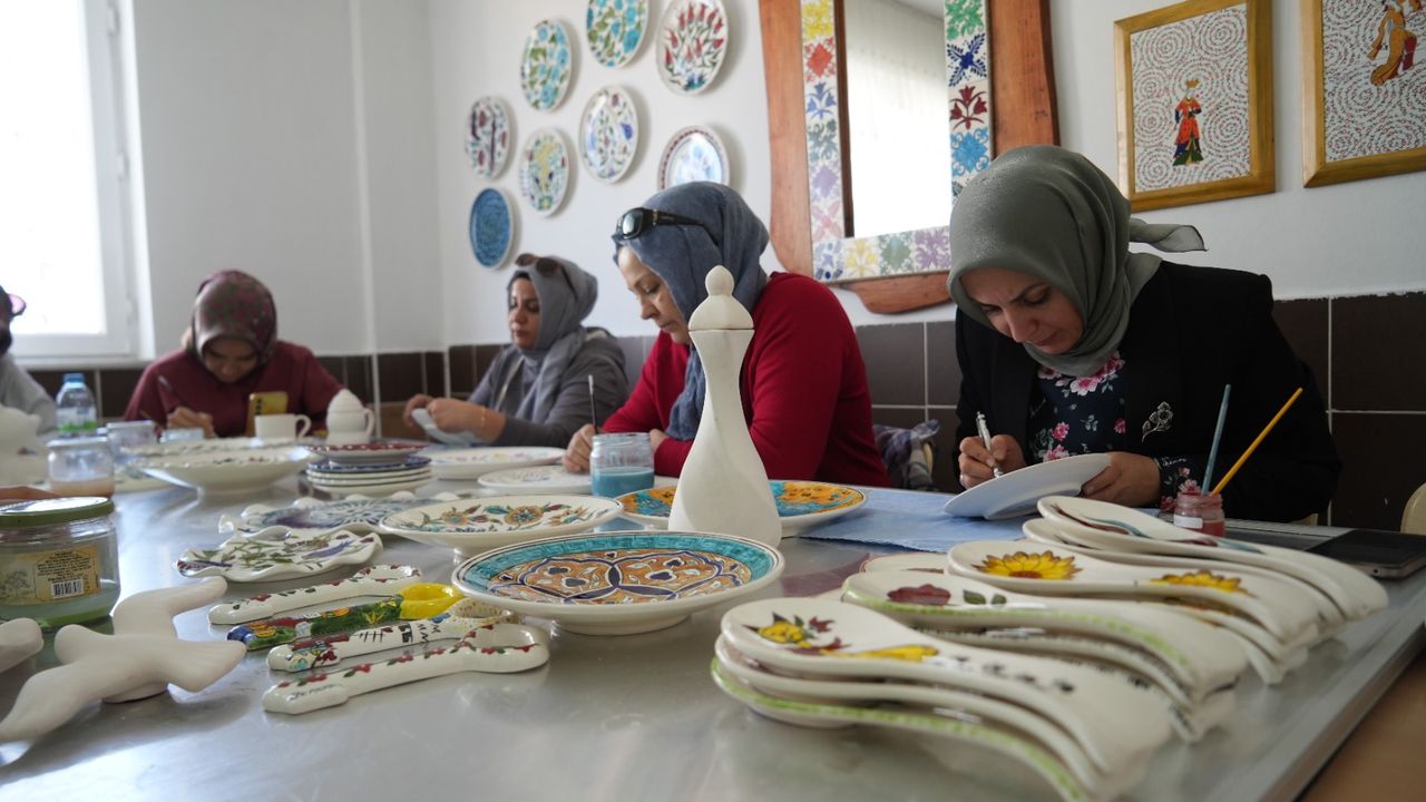 Seramik üzerine işlenen Osmanlı motifleriyle birbirinden güzel eserler ortaya çıkaran kadınlar, hem unutulmaya yüz tutmuş bir kültürel mirası yaşatıyor hem de ürettikleri ürünlerle ekonomik kazanç sağlıyor. Halk Eğitimi Merkezi'nde verilen eğitimlerle çini sanatının tüm inceliklerini öğrenen kadınlar, aldıkları uygulamalı dersler sayesinde tabaktan vazoya, pano süslemesinden çeşitli hediyelik objelere kadar pek çok ürünü başarıyla hazırlıyor. Kurs Eğitmeni Sema Günay, çini yapımının teknik aşamalarını detaylarıyla öğrettiklerini belirterek, kursiyerlerin kısa sürede büyük ilerleme kaydettiğini dile getirdi. Günay, kursun gördüğü ilgiden memnuniyet duyduğunu aktararak şunları söyledi:
