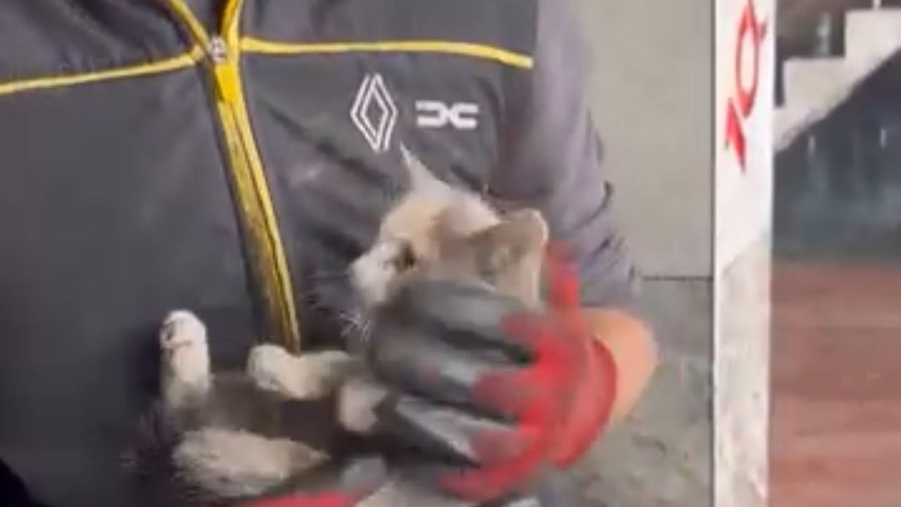 Kurtarılan yavru kedi daha sonra güvenli bir yere bırakıldı.
