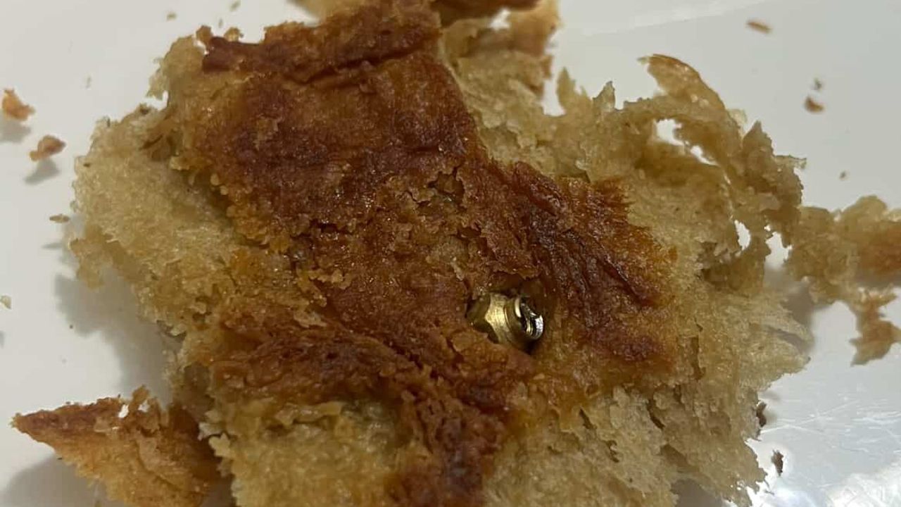 Ramazan ayının vazgeçilmez lezzetlerinden olan şekersiz tahinli ekmeğini iftarda tüketmek üzere satın alan bir vatandaş, tahinli ekmeğin son parçasında sert bir cisim fark etti. Kontrol ettiğinde ürünün içinden somun vida çıktığını gördüğünü belirten vatandaş, duruma tepki gösterdi.