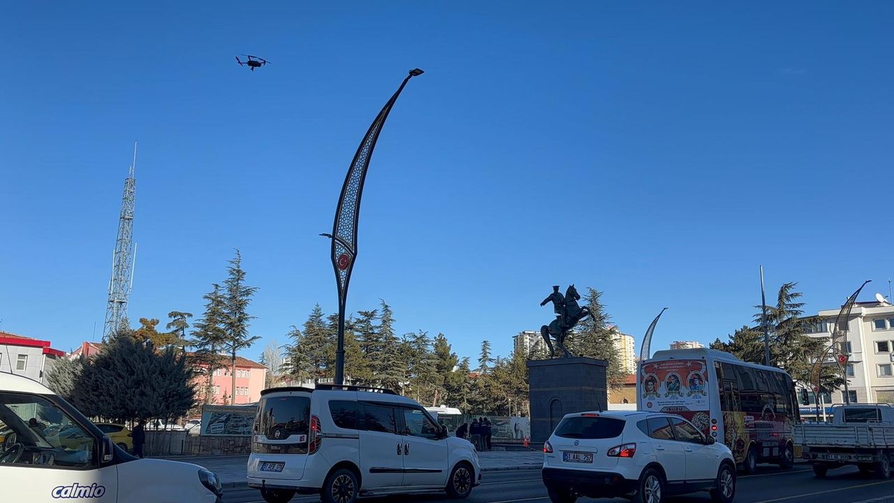 Niğde Cumhuriyet Meydanı’nda emniyet trafik ekipleri tarafından trafik ve yaya güvenliğini sağlamak amacıyla drone destekli denetim gerçekleştirildi.