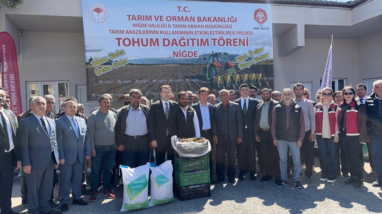Niğde Tarım ve Orman Müdürlüğü tarafından tohum ve çilek fidesi dağıtım töreni gerçekleştirildi. Programa Niğde Valisi Nedim Akmeşe, Niğde Tarım ve Orman Müdürü Furkan Mete, protokol üyeleri ve çok sayıda çiftçi katıldı.
