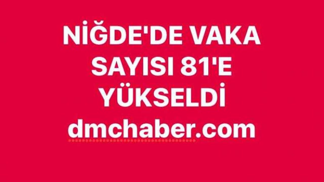 NİĞDE il genelinde vaka sayısı 81'e yükseldi. Vakaların köy ve beldelerde arttığı öğrenildi. Güvenilir kaynaklardan edindiğimiz bilgileri DMC haber ve Niğde Web Tv ekibi olarak her gün sizlerle paylaşacağız.