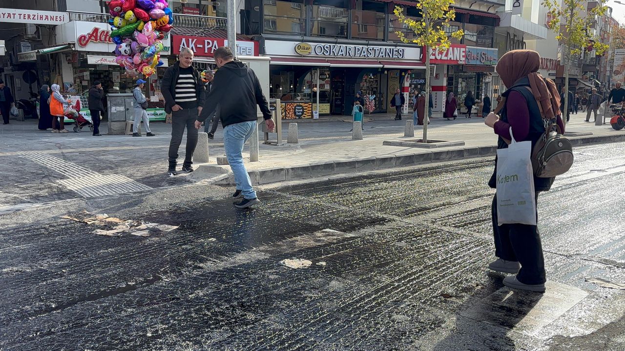 Cadde boyunca süren asfaltlama işlemleri sırasında bölgeden geçmek isteyen vatandaşlar, sıcak zift nedeniyle zor anlar yaşadı. Henüz kurumayan ziftin ayakkabılarına yapışmaması için vatandaşlar, kendi yöntemleriyle pratik bir çözüm üretti.
