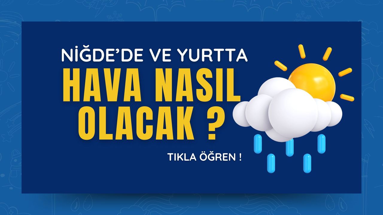 Meteoroloji Genel Müdürlüğünden alınan tahminlere göre, Niğde ve tüm yurtta tahmin edilen hava koşulları şu şekilde olacak..