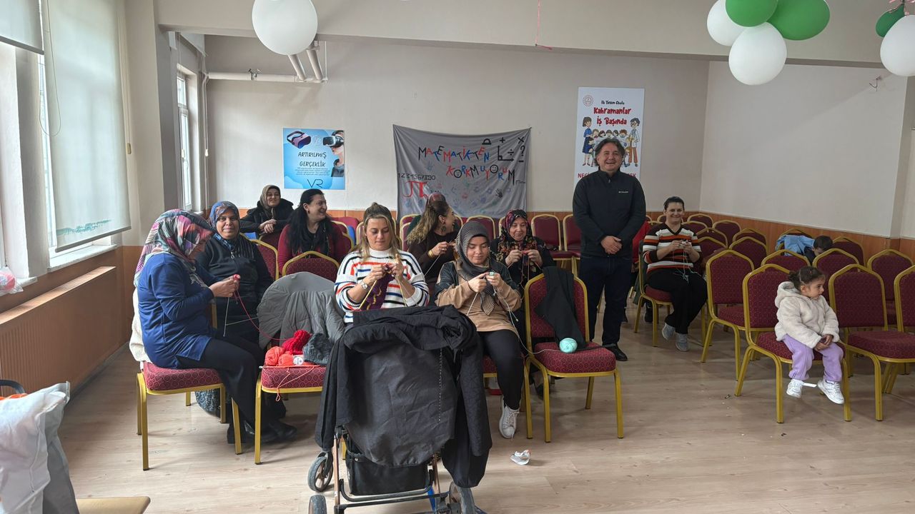 Necip Fazıl Kısakürek İlkokulu velilerinin katılımıyla gerçekleşen etkinlikte, el emeği kışlık ürünlerin hazırlanmasının yanı sıra ekran üzerinden “Velivizyon” konulu etkinlikler de izlendi.