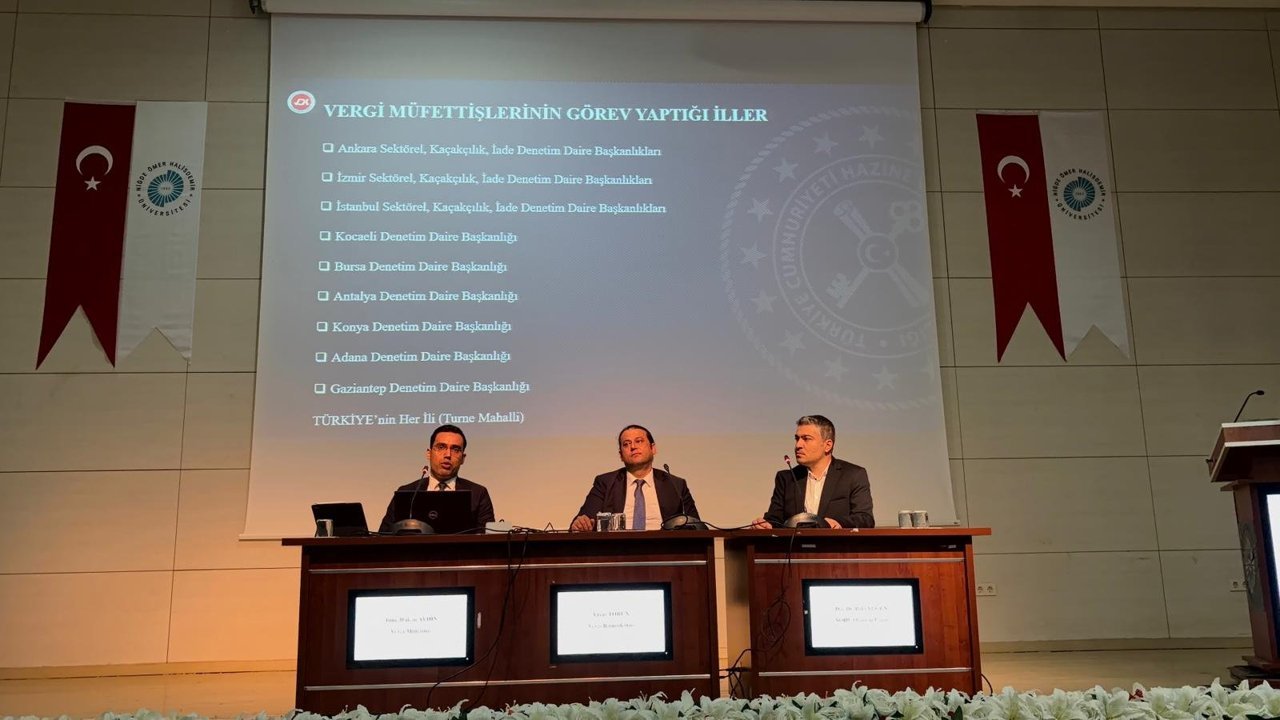 Programda Vergi Başmüfettişi Yaşar Torun ve Vergi Müfettişi Tunç Hakan Aydın, mesleki deneyimlerini paylaşarak vergi müfettişliği süreci, sınav aşamaları ve mesleğin zorlukları hakkında öğrencilere bilgi verdi.