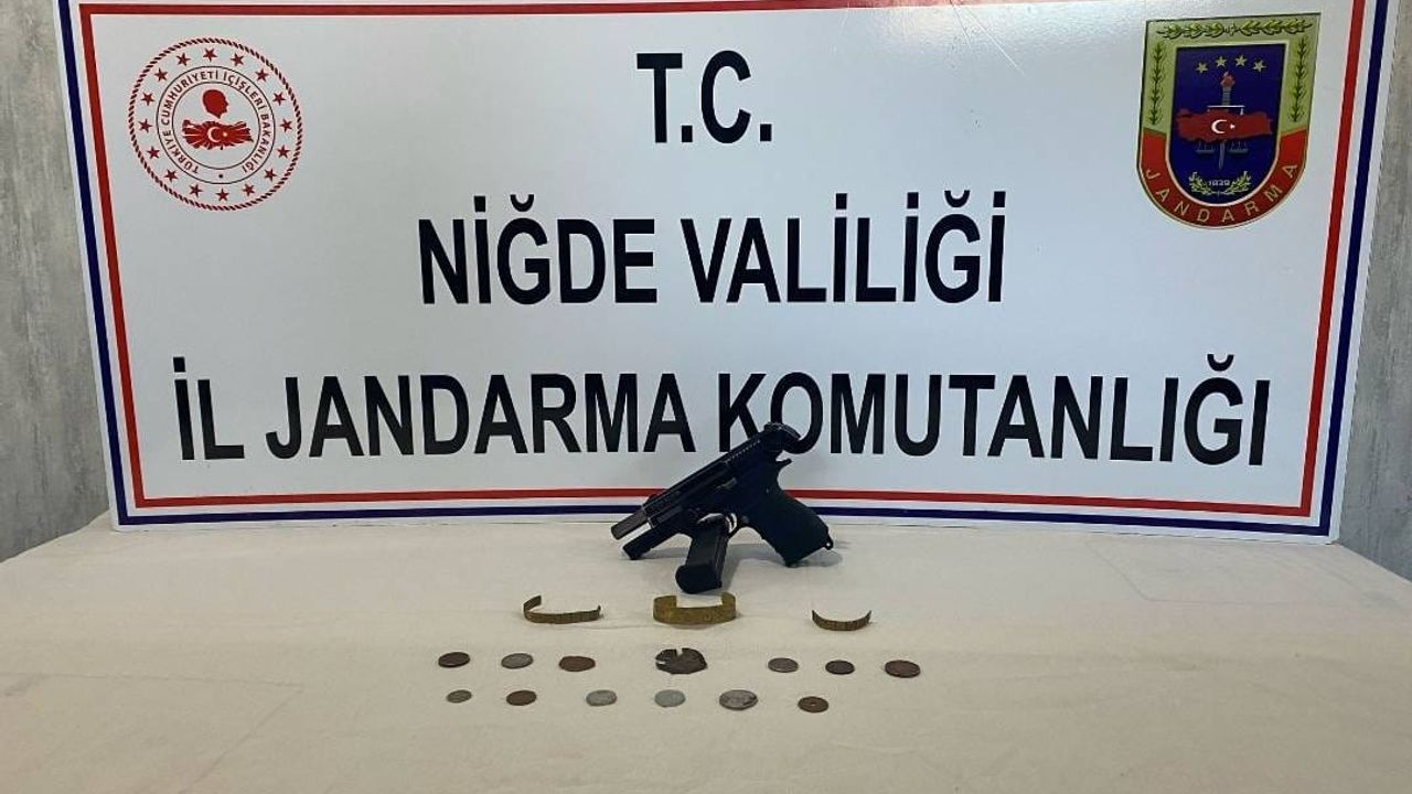 Niğde’de jandarma ekiplerini düzenlediği operasyonda yabancı uyruklu bir kişiden 16 adet tarihi eser ele geçirildi.  İl Jandarma Komutanlığı Kültür ve Tabiat Varlığı Kaçakçılığı ile mücadele kapsamında Bor ilçesi Çukurkuyu beldesinde yabancı uyruklu bir kişiyi gözaltına aldı. Şüphelinin üzerinde yapılan aramada 16 adet  tarihi eser  ve ruhsatsız tabanca ele  geçirildi. Şüpheli gözaltına alındı.