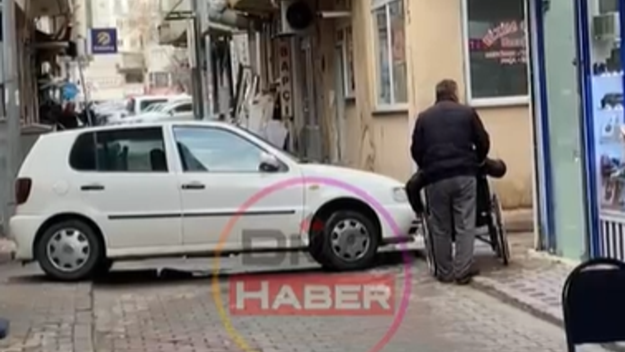Şehir merkezinde yaşanan olaydaki görüntülerde, yolun ortasına park edilen otomobil nedeniyle tekerlekli sandalyedeki engelli vatandaşın geçişinin engellendiği görüldü. Cep telefonu kamerasıyla kaydedilen görüntülerde, engelli vatandaşın bir süre beklemek zorunda kaldığı, park edilen araç nedeniyle yoluna devam edemediği yer aldı.