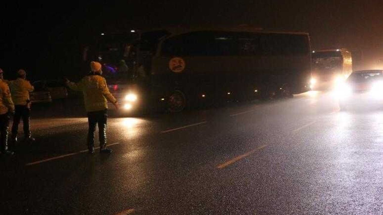 Aralarında öğrencilerin de bulunduğu kafile, daha sonra polis eşliğinde 20 otob&u