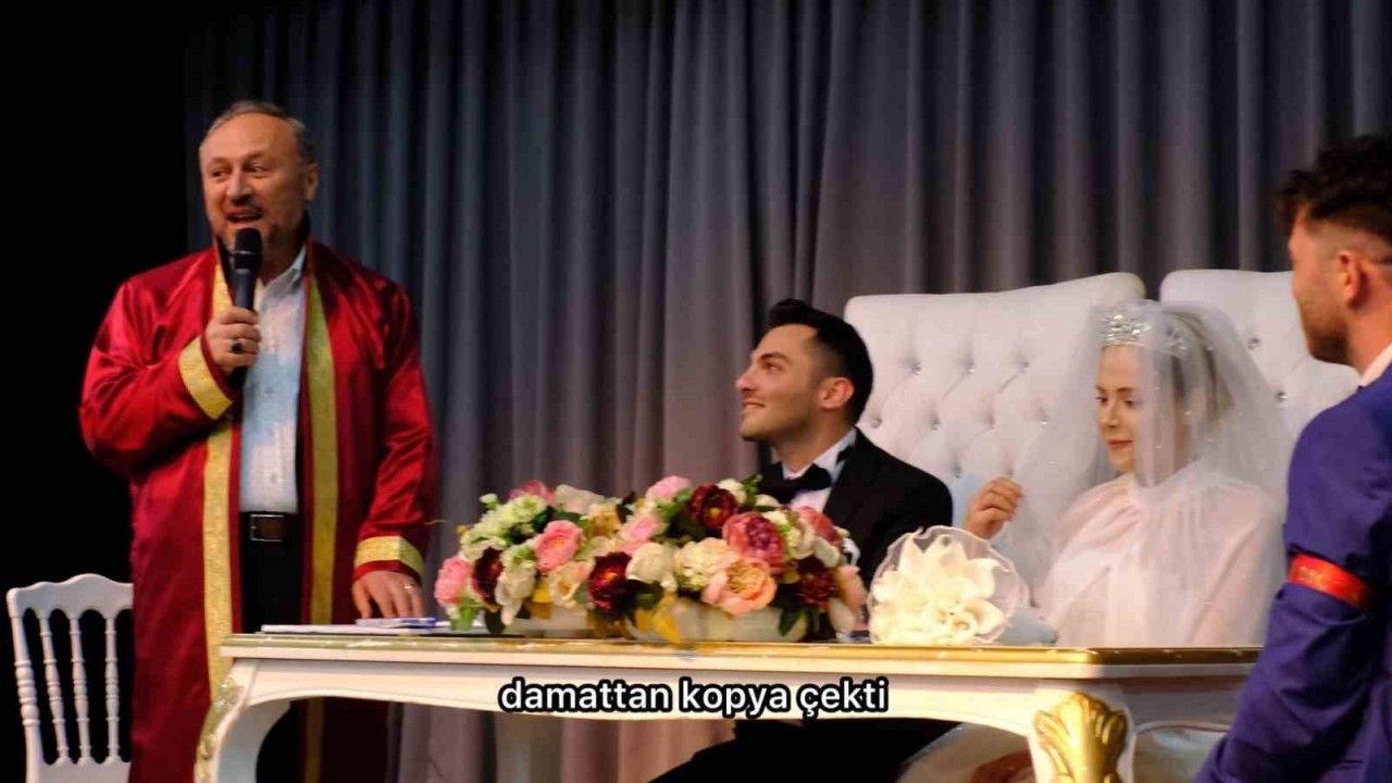 Canik Kültür Merkezi’nde dünya evine giren Muhammet Fatih Ukde ve Gülşah Diloğlu çiftinin nikah töreninde renkli anlar yaşandı. Nikah memuru, gelin Gülşah Diloğlu’na "Evlenmeyi kabul ediyor musunuz?" sorusunu yönelttiği sırada, damat Muhammet Fatih Ukde gelinin kulağına "Evet de" diye fısıldadı. Bu durumu fark eden nikah memuru, gülümseyerek "Bu evet sayılmaz. Damattan kopya çekti. Damat sufle verdi. Yani baskı var. Damadın 2 hakkı kaldı, birini kullandı" diyerek esprili bir dille, bu kez "Kimsenin baskısında kalmadan ki damat dahil, evlenmeyi kabul ediyor musun?" şeklinde sorarak gelinden yanıtı tekrarlamasını istedi.