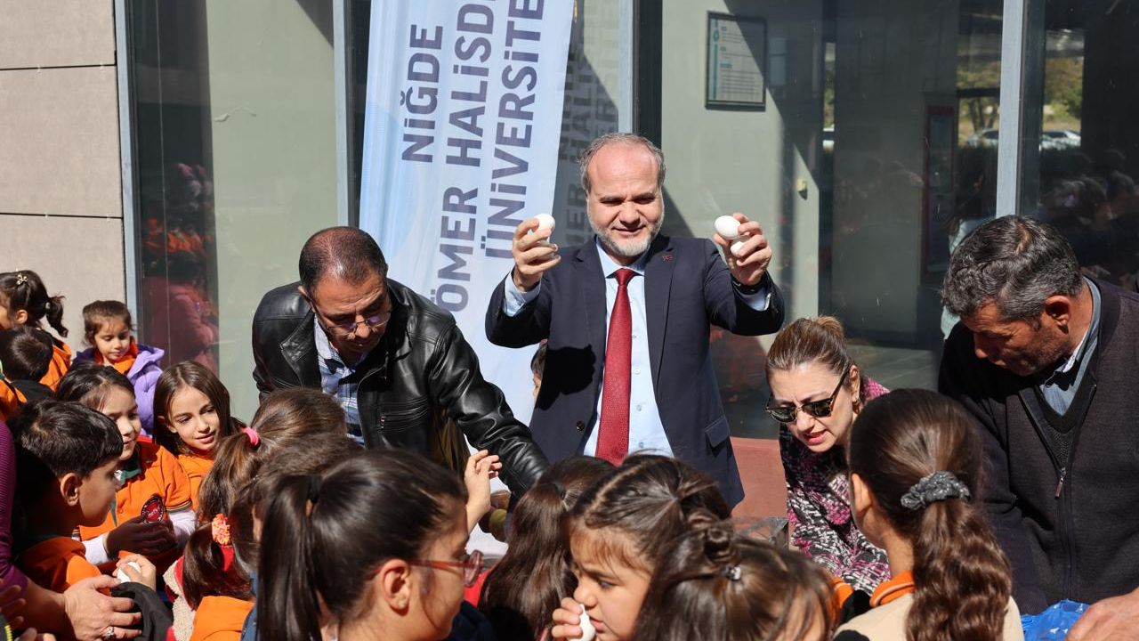 Etkinliğe Niğde'deki okullardan anaokulu ve ilkokul düzeyinde çok sayıda öğrenci katıldı. 1996 yılından bu yana tüm dünyada her yıl ekim ayının ikinci haftasında yumurtanın faydası ve insan beslenmesindeki önemi konusunda farkındalık yaratmaya yardımcı olan “Dünya Yumurta Günü” düzenlenmektedir. Niğde Ömer Halisdemir Üniversitesi’nde bu önemli gıdanın çocuklar arasında tanınırlığını artırmak amacıyla Niğde İl Milli Eğitim Müdürlüğü ile birlikte Tarım Bilimleri ve Teknolojileri Fakültesi’nde “Çocuklar Tarımla Tanışıyor ve Dünya Yumurta Günü” etkinliği gerçekleştirildi.