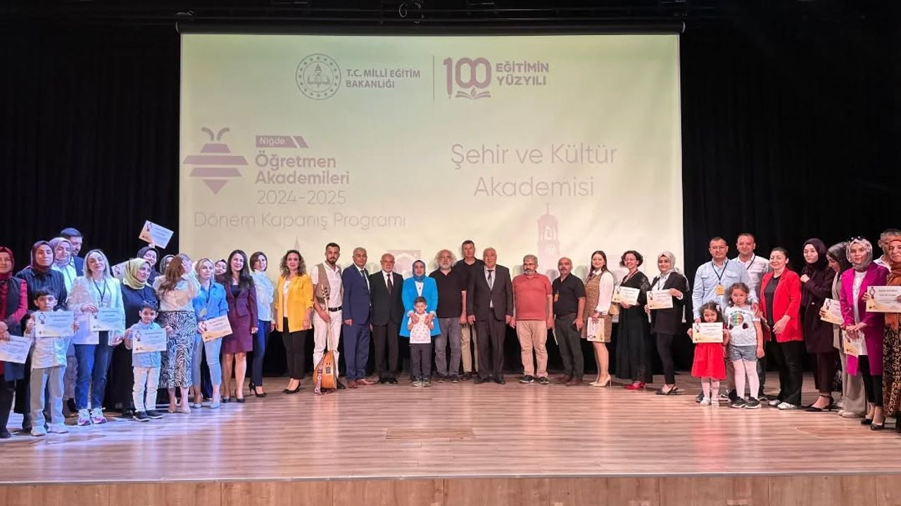 Niğde İl Milli Eğitim Müdürlüğü tarafından hayata geçirilen “Öğretmen Akademileri” projesi kapsamında yürütülen Şehir ve Kültür Akademisi, dönem sonu kapanış toplantısıyla sona erdi. Programa Niğde Belediye Başkan Yardımcısı Muharrem Çiftçibaşı, İl Milli Eğitim Müdürü Elif Özbek, akademide eğitmen olarak görev alan değerli akademisyenler ve arkeologlar ile şube müdürleri ve öğretmenler katıldı.