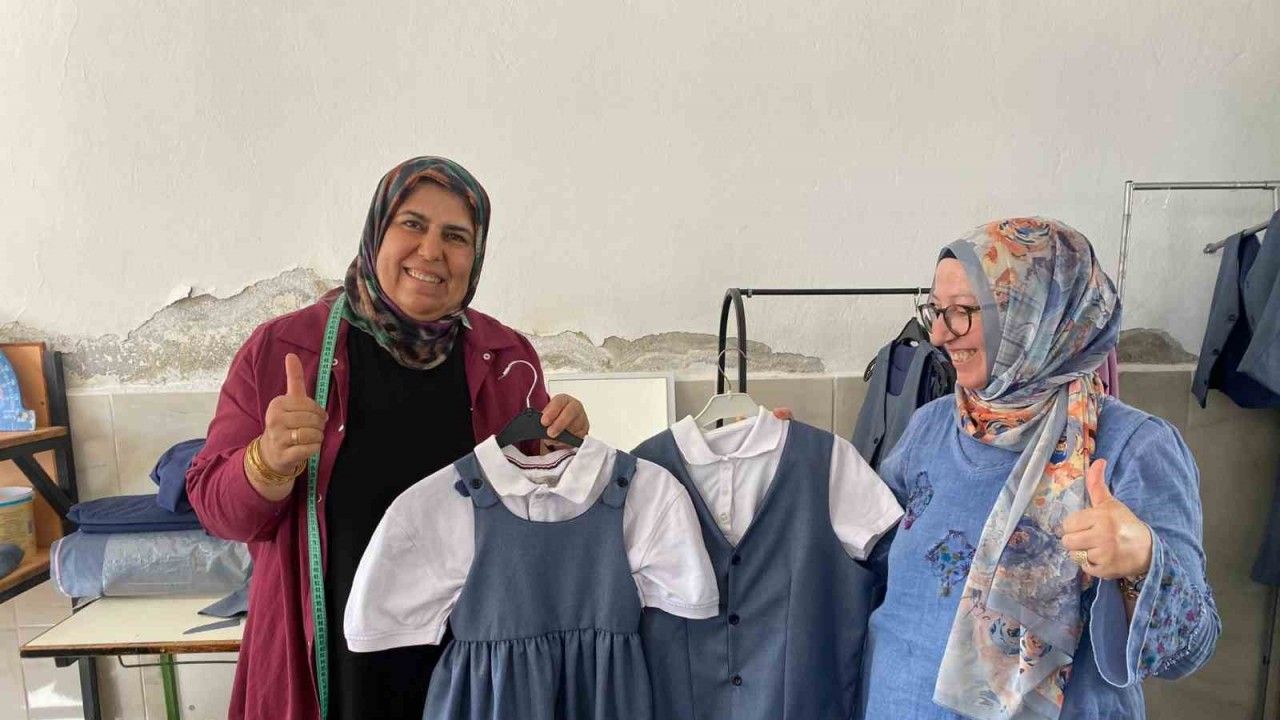 Halk Eğitim Merkezi Kurs Öğretmeni Fatma Akbulut, "Kursiyerlerimizin kendi çocukları da bu okullarda okuyor. Kendi çocuklarına kıyafet dikmek, onların da anneleri tarafından kıyafet dikilmesini görmek çok hoşlarına gitti. 12 kursiyerimizle ilk aşamada 60 öğrencimize kıyafet dikiyoruz" dedi.