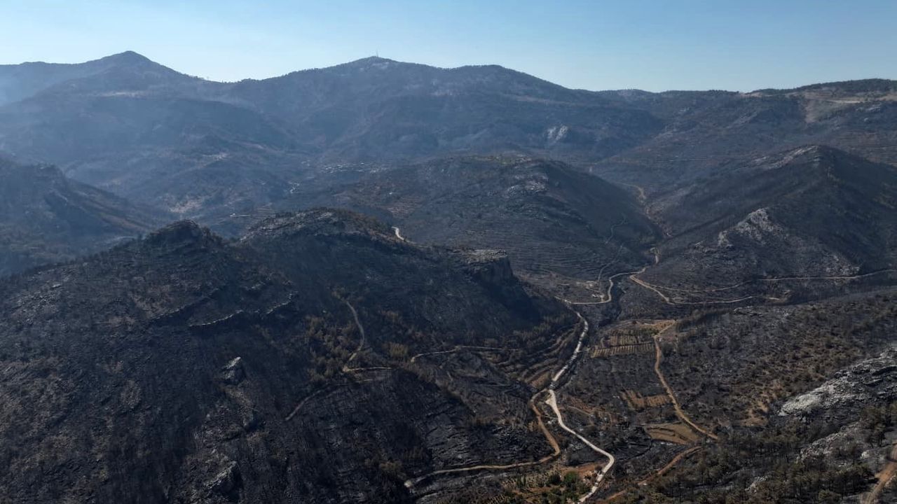 Mersin'in Silifke ilçesinde 3 gün boyunca havadan ve karadan binden fazla personelin müdahalesiyle söndürülen orman yangını sonrasında ortaya çıkan acı manzara havadan görüntülendi.