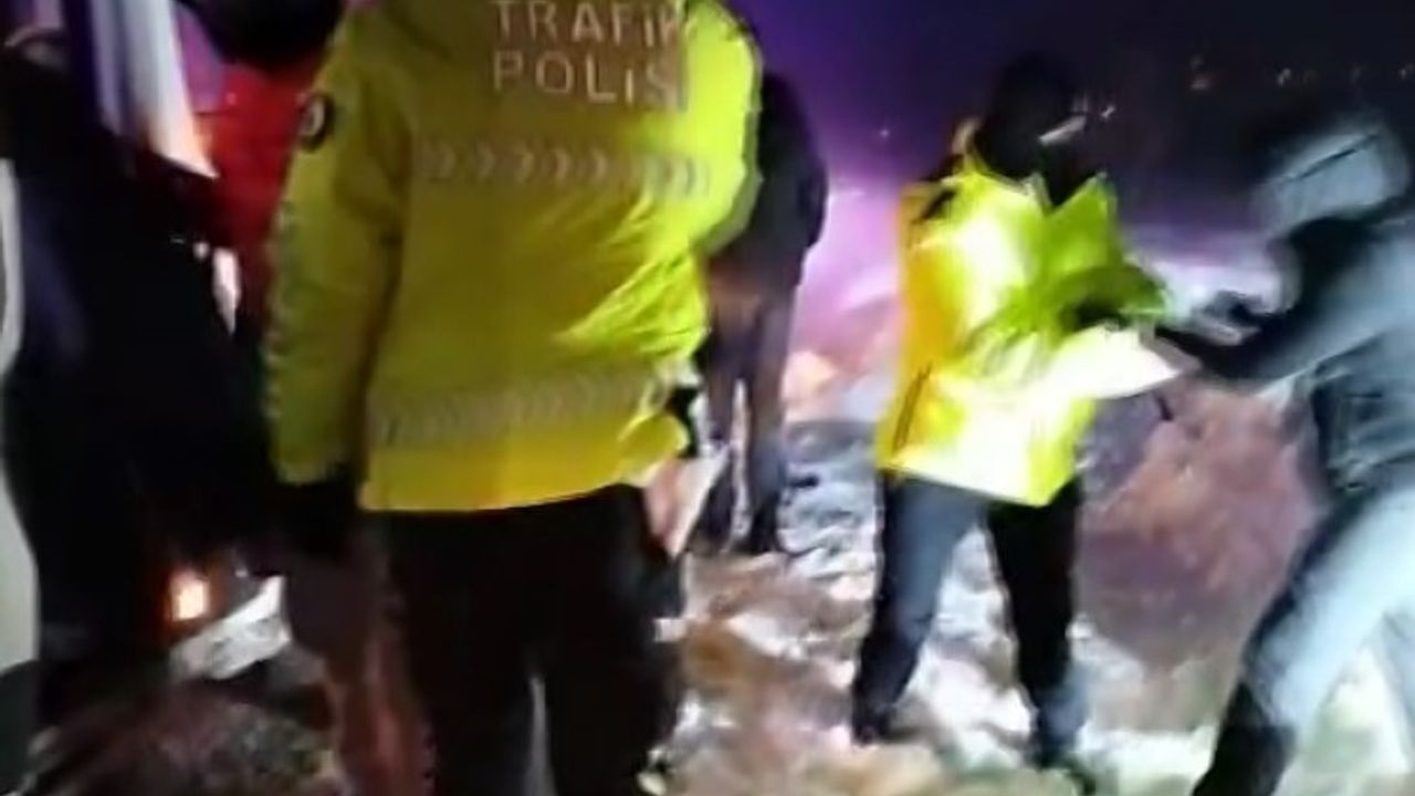 Aksaray’da kar yağışı aralıklarla devam ederken, şehirler arası karayollarında ulaşımda güçlükler yaşanıyor. Özellikle yüksek kesimlerde kar yağışı sonrası açılan yollar, tipi nedeniyle tekrar karla kaplanıyor. Kar yağışı ve tipinin etkili olduğu Aksaray-Nevşehir Karayolu’nda sürgün nedeniyle arazilerdeki karlar yola taşınıyor. Yollarda oluşan yoğun kar birikintileri nedeniyle trafikte ilerlemekte güçlük çeken araçlar çok düşük hızlarda seyrederken, bir minibüs ve bir yolcu otobüsü refüj ile şarampole düşerek kara saplandı. Hava şartları nedeniyle kurtarma çalışmasının zor olduğu yolda mahsur kalanların imdadına polis ekipleri yetişti. Gelen ihbarlar üzerine harekete geçen Aksaray İl Emniyet Müdürlüğü Trafik Tescil ve Denetleme Şubesi ile Bölge Trafik Şubesi ekipleri olay yerine intikal ederek, yolda güvenlik önlemleri aldı. 6 ayrı ekip aracıyla olay yerine gelen polis ekipleri, hava sıcaklığının eksi 7’leri bulduğu karayolunda mahsur kalanları ekip araçlarıyla tesislere taşıdı. Aralarında yabancı turistlerin de bulunduğu 53 kişinin mahsur kaldığı karayolunda birçok vatandaşı tesislere götüren polis ekiplerinin yardımına da AFAD ekipleri ile vinçler yetişti. Bir beldeden gelen minibüse de alınan yolcuların tamamı sağ salim tesislere taşınırken, kara saplanan yolcu otobüsü ve minibüs saatler süren vinçli çalışmayla saplandıkları yerden kurtarıldı. Araçların kurtarma çalışmasının ardından tesisteki yolcular tekrar araçlara alınarak, açılan yollardan gönderildi.