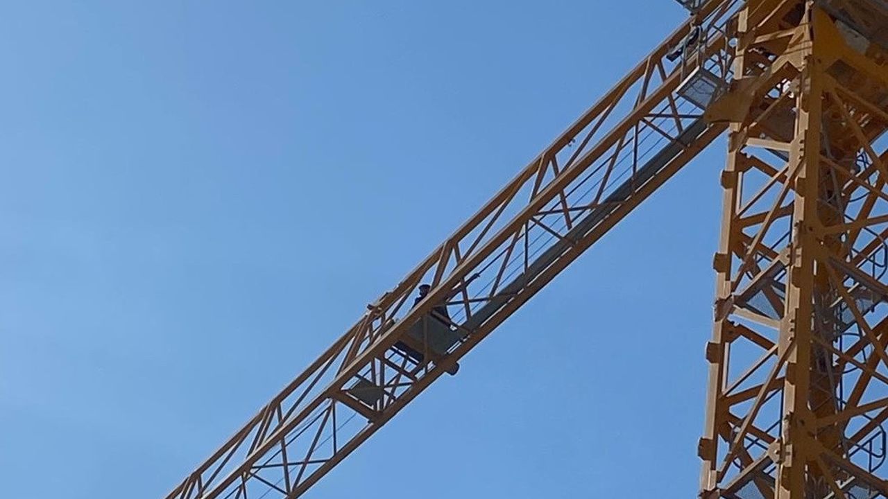 Adıyaman’da, bir işçi parasını alamadığını iddia ederek kule vince çıktı.