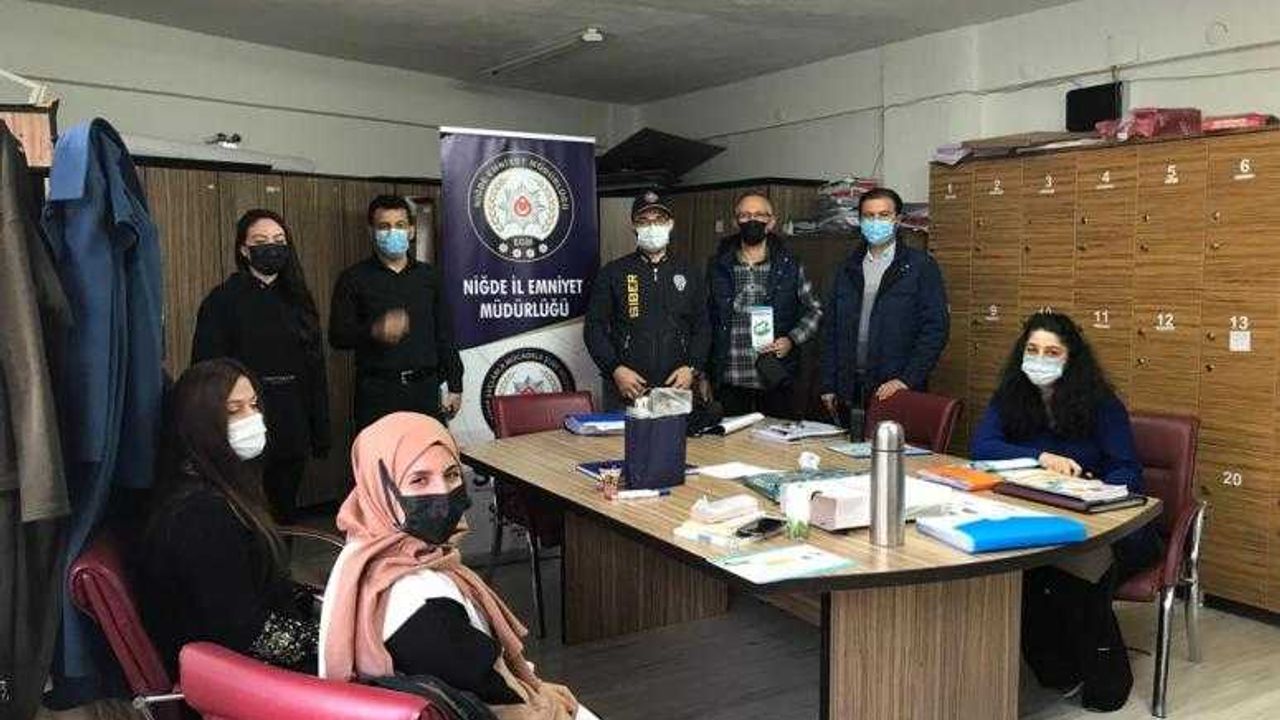 NİĞDE'de polis ekipleri 45 okulda 515 öğretmen, bin 350 veli ve 690 öğrenciye bilgilendirilme yaparak, broşür dağıttı.