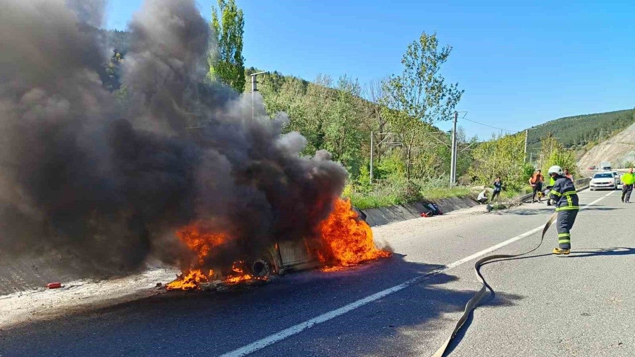 Bilecik’te seyir halinde iken bir anda alevler yükselen araç cayır cayır yandı.