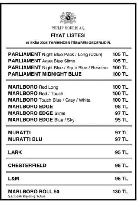 Philip Morris, paket başına 5 liralık fiyat artışıyla birlikte yıl içinde üçüncü kez fiyat güncellemesi yapmış oldu.