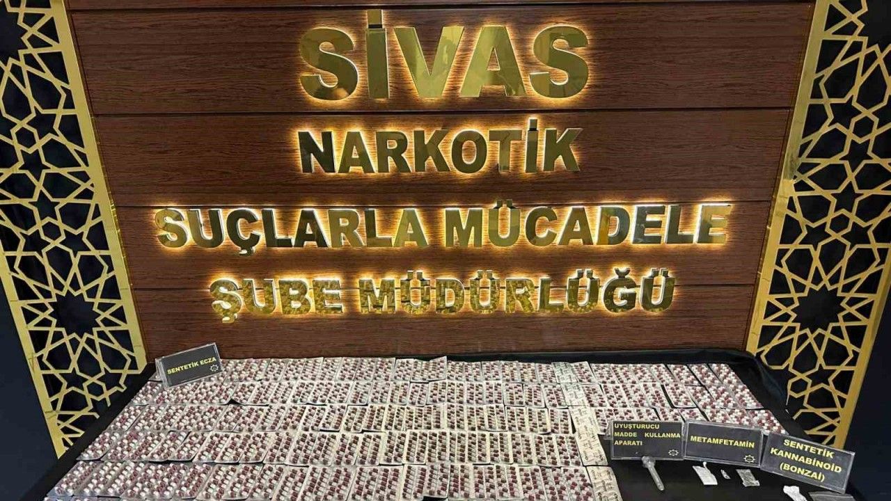 Sivas İl Emniyet Müdürlüğü ekipleri, uyuşturucu madde operasyonlarını aralıksız sürdürüyor. Sivas Cumhuriyet Başsavcılığı koordinesinde Narkotik Suçlarla Mücadele Şube Müdürlüğü tarafından yürütülen çalışmada; 4 kişi yakalandı. Yakalanan şahısların üzerinde, eşyalarında, araçlarında ve ikametlerinde arama yapıldı. Polis ekiplerince yapılan aramalarda; 2 bin 301 sentetik ecza hap, 3 parça halinde toplam 36 kullanımlık kâğıda emdirilmiş sentetik kannabinoid maddesi, 3,36 gram metamfetamin maddesi, 4,87 gram sentetik kannobinoid maddesi, 1 uyuşturucu madde kullanma aparatı, ele geçirildi.