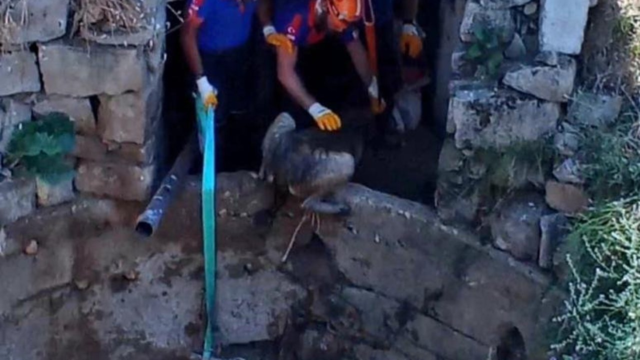 NİĞDE'de 6 metrelik su kuyusuna düşen köpek AFAD ekipleri tarafından kurtarıldı.