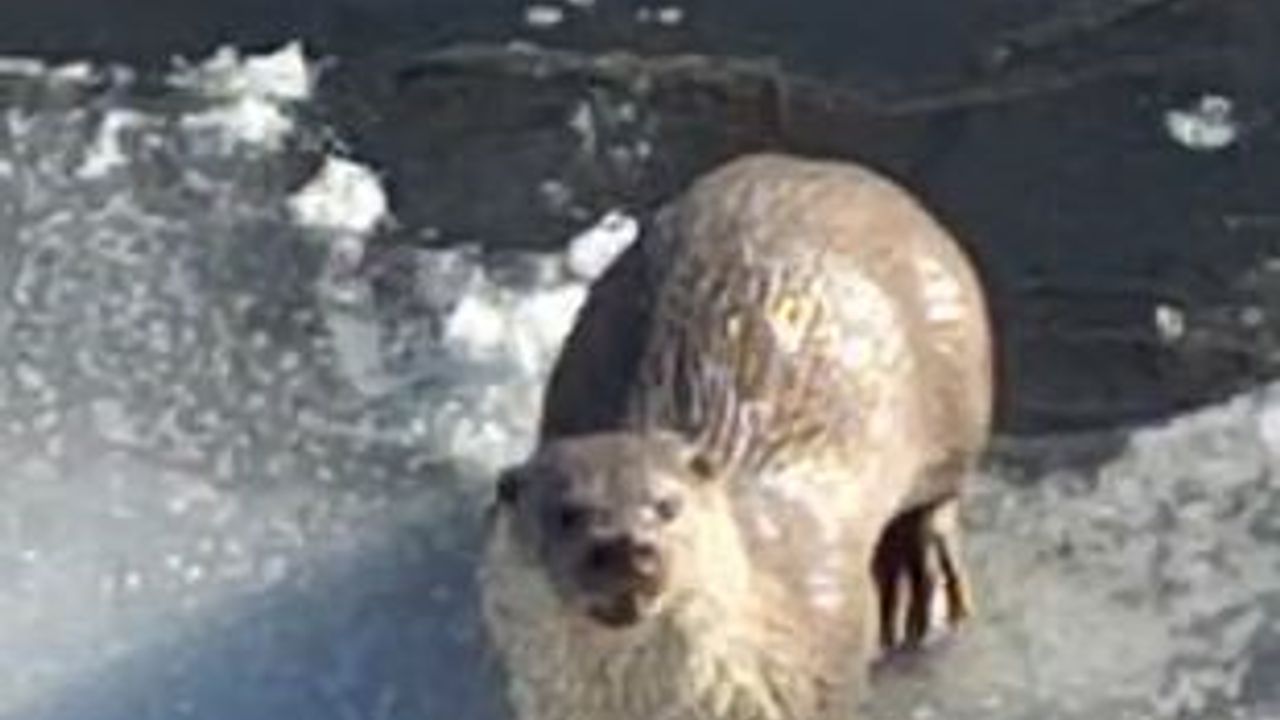 Kısa bir süre buz üstünde ilerleyen su samuru tekrar Kura nehri’ne dalarak gözden kayboldu.