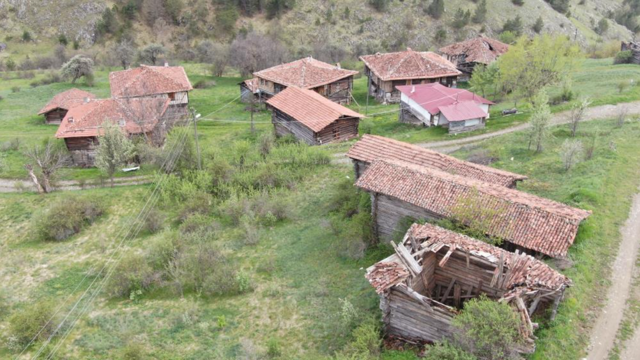 Bölgenin ahşap kültürünü de yansıtan evler, dron ile görüntülendi.