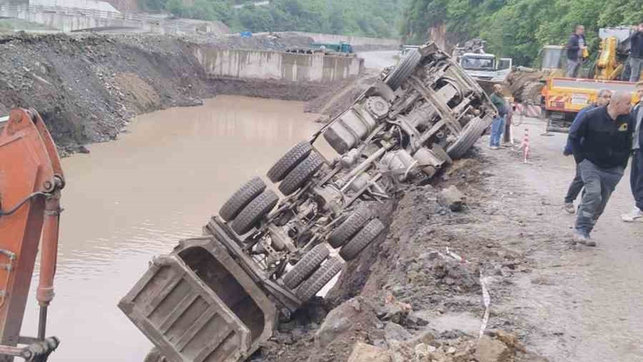 Trabzon’un Araklı ilçesi Karadere yolu Kaşıkçı mevkiinde yol yapım çalışmalarında çalışan taş kamyonu dolgu malzemesi boşalttığı esnada devrildi. Kaza sonucu Trabzon-Bayburt yolu ulaşıma kapandı.
