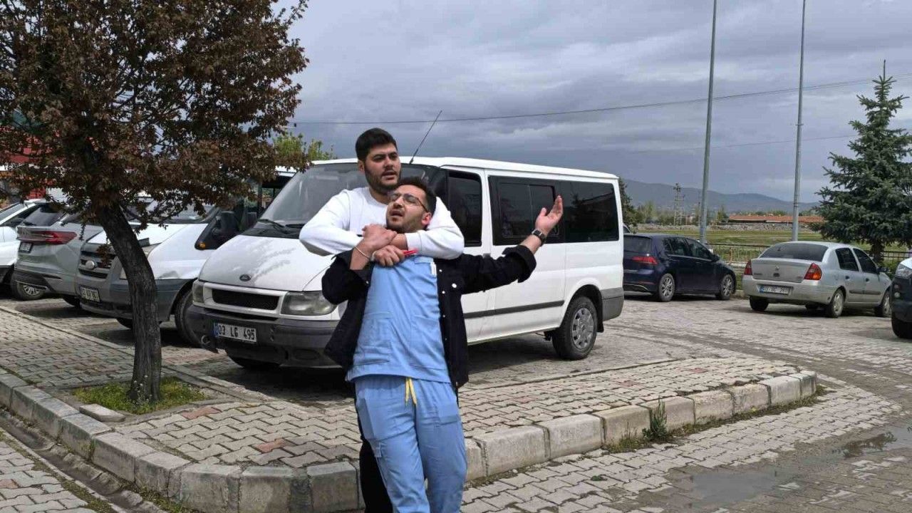 Afyonkarahisar’da hastanede gerçekleştirilen deprem ve yangın tatbikatında senaryo gereği bir hasta yakının sağlık çalışanını rehin aldığı anlar gerçeği aratmazken, tatbikata katılanlar oynadıkları rollerle usta oyunculara taş çıkarttı.
