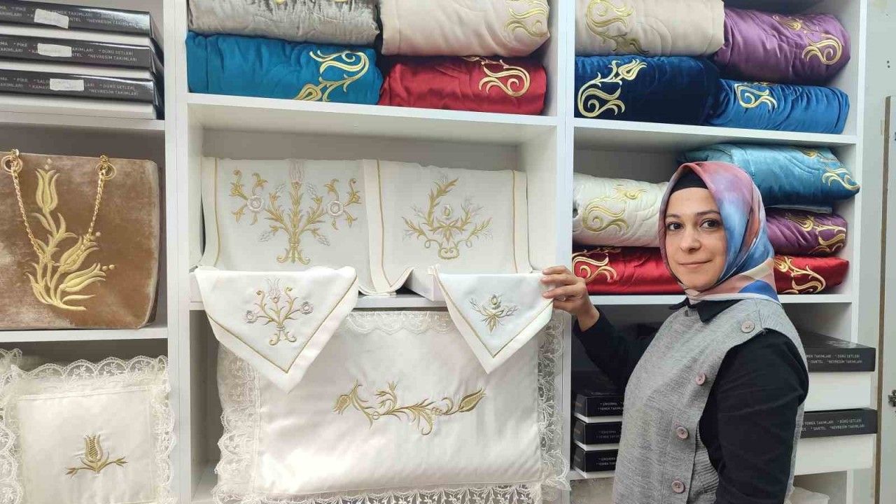 Yaklaşık 20 yıldır bu sektörde olduğunu söyleyen Merve Ekici, "Kahramanmaraş’ın el işlerini yapıyoruz. Sim sırma yapıyoruz. Kadınlarımızın yıllardır el emeği göz nuru dantelleri, evde işledikleri kanaviçeleri değerlendirme yapıyoruz. Yaklaşık 10 kişilik bir ekiple çalışıyoruz. Biz bu işe çok küçük yaşta başladık. Burada salon takımlarımız, yemek takımlarımız, seccadelerimiz var. Burada çeyize dair birçok ürünümüz var. Evde çalışan kadınlar var. Onlara iş imkanı sağlıyoruz. Onlara makine veriyoruz ve işlerini akşamları yapıyorlar. Biz de sabahları alıyoruz, burada satışa sunuyoruz. Elde de yapıyoruz, makinede de yapıyoruz. Biz burada çok amaçlı çalışıyoruz" ifadesini kullandı.