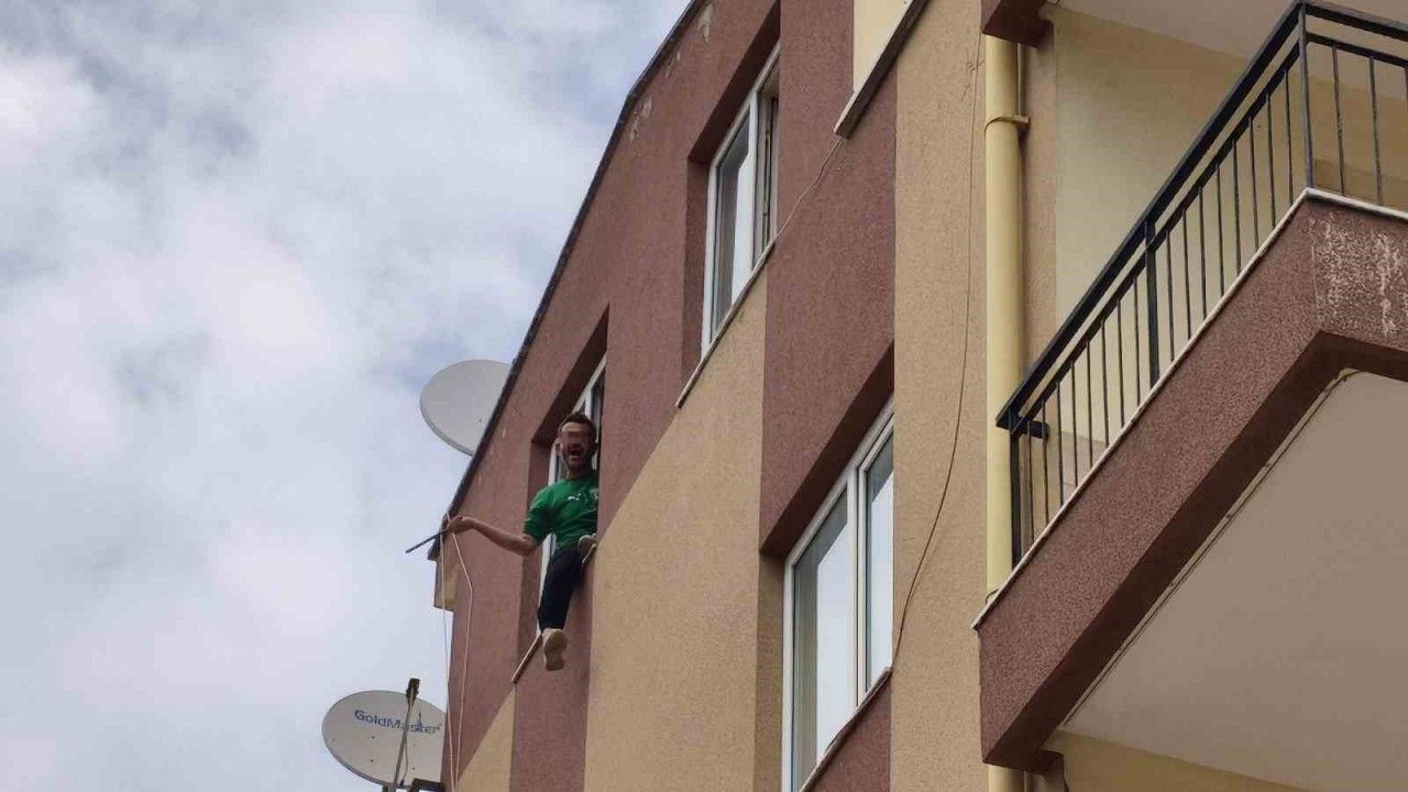 Antalya’da apartman dairesinin penceresine çıkan şahıs polis ve itfaiye ekiplerine zor anlar yaşattı. Kısa süreli görüşmenin ardından ikna edilen genç ifadesi alınmak üzere polis merkezine götürüldü.
