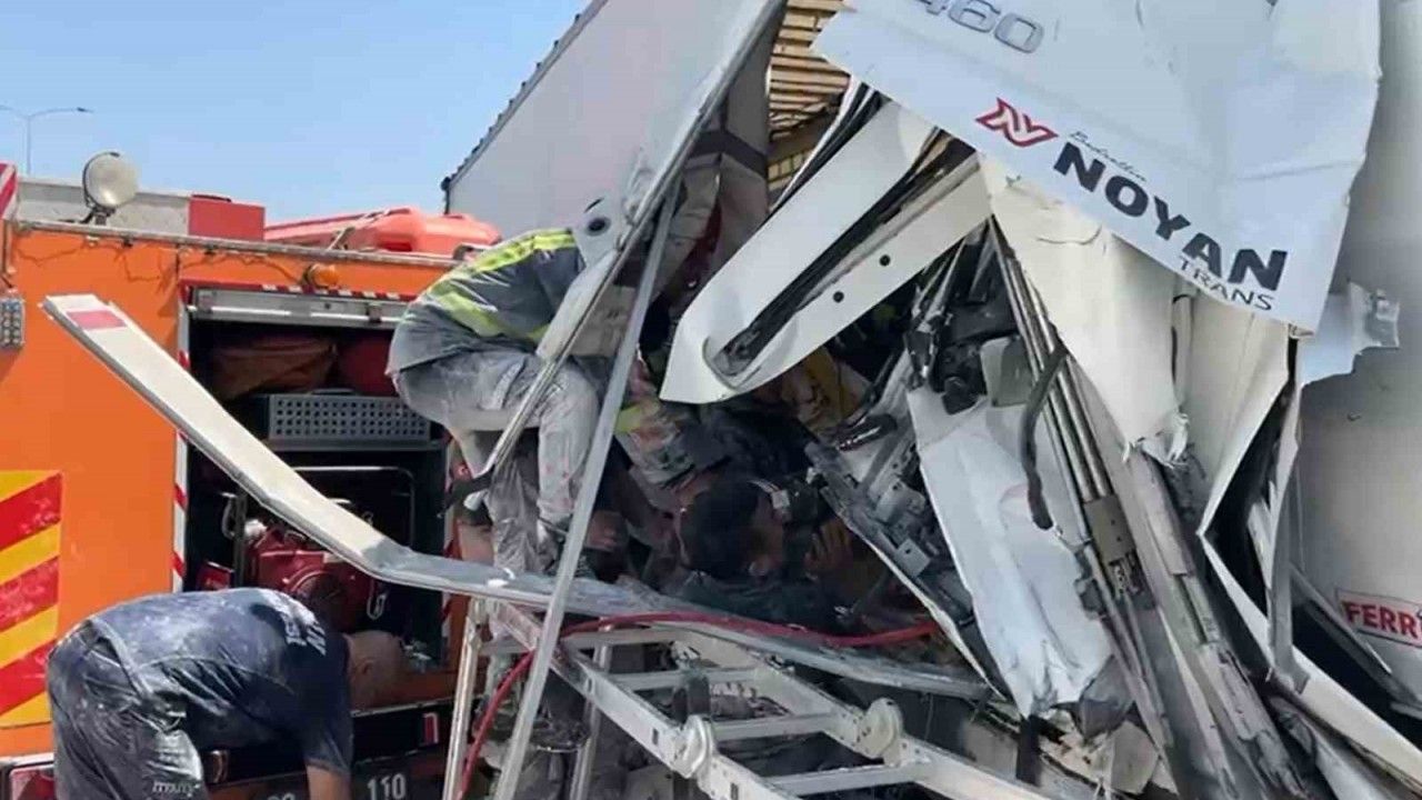 Kaza, Aydın-Denizli Otoyolu gişeleri yakınlarında meydana geldi. Edinilen bilgiye göre, henüz bilinmeyen bir nedenle U.G. idaresindeki 33 AIH 751 plakalı tır önünde ilerleyen S.U. yönetimindeki 35 RMZ 22 plakalı başka bir tıra arkadan çarptı. Çarpışmanın etkisi ile arkadaki tır şoförü U.G. araç kabini içerisinde sıkışarak yaralandı. Kazayı görenler durumu 112 Acil Çağrı Merkezi’ne bildirdi. İhbar üzerine bölgeye acil sağlık, polis, jandarma, itfaiye, UMKE ve AFAD ekipleri sevk edildi. Kısa sürede olay yerine gelen Aydın Büyükşehir Belediyesi İtfaiye Daire Başkanlığı ve AFAD ekipleri yaralı sürücü U.G.’yi sıkıştığı yerden çıkartarak sağlık ekiplerine teslim etti. Sağlık ekipleri tarafından da ilk müdahalesi yapılan tır sürücüsü ambulansla hastaneye kaldırdı.