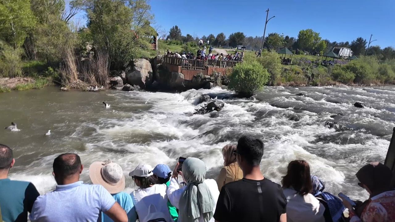 Erciş'te sıcak havanın tadını çıkarmak isteyen yüzlerce kişi, balık bendindeki mesire alanlarına akın etti. Hem piknik yapan hem de Van Gölü’nden tatlı sulara yumurtalarını bırakmak için suyun akışının tersine yüzen, karşısına çıkan engelleri adeta uçarcasına geçmeye çalışan balıkların göçünü izleyen vatandaşlar, keyifli bir hafta sonu geçirdi.