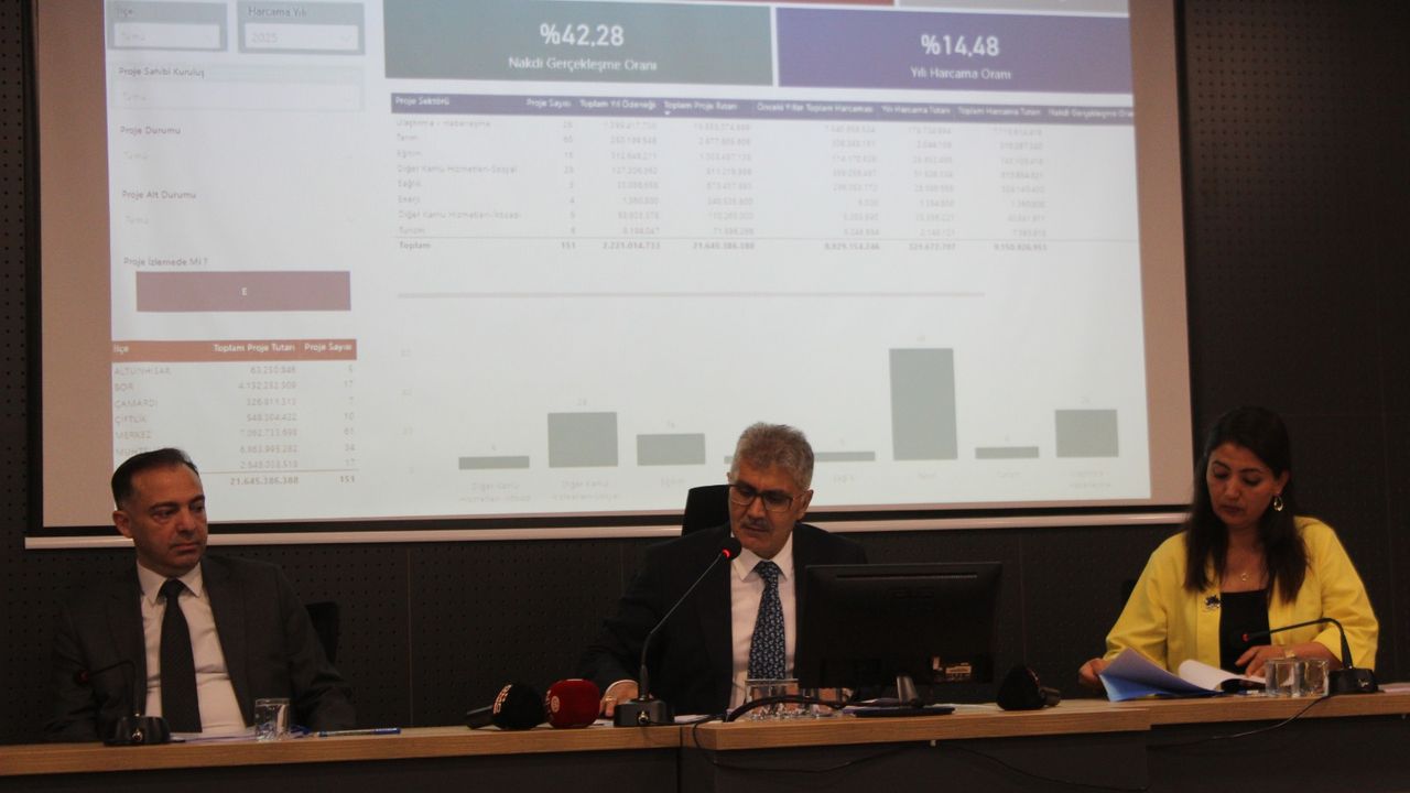 Devam eden projelerin tarım, kamu hizmetleri, ulaştırma, eğitim, kültür-turizm, sağlık ve enerji gibi birçok alanda yoğunlaştığını belirten Vali Çelik, toplam yatırım tutarının 21 milyar 645 milyon 386 bin TL olduğunu söyledi. 2025 yılı için ayrılan 2 milyar 221 milyon 14 bin TL’lik ödeneğin, Mart sonu itibarıyla 321 milyon 672 bin TL’sinin harcandığını kaydeden Vali Çelik, nakdi gerçekleşme oranının ise yüzde 14,48 olduğunu ifade etti.
