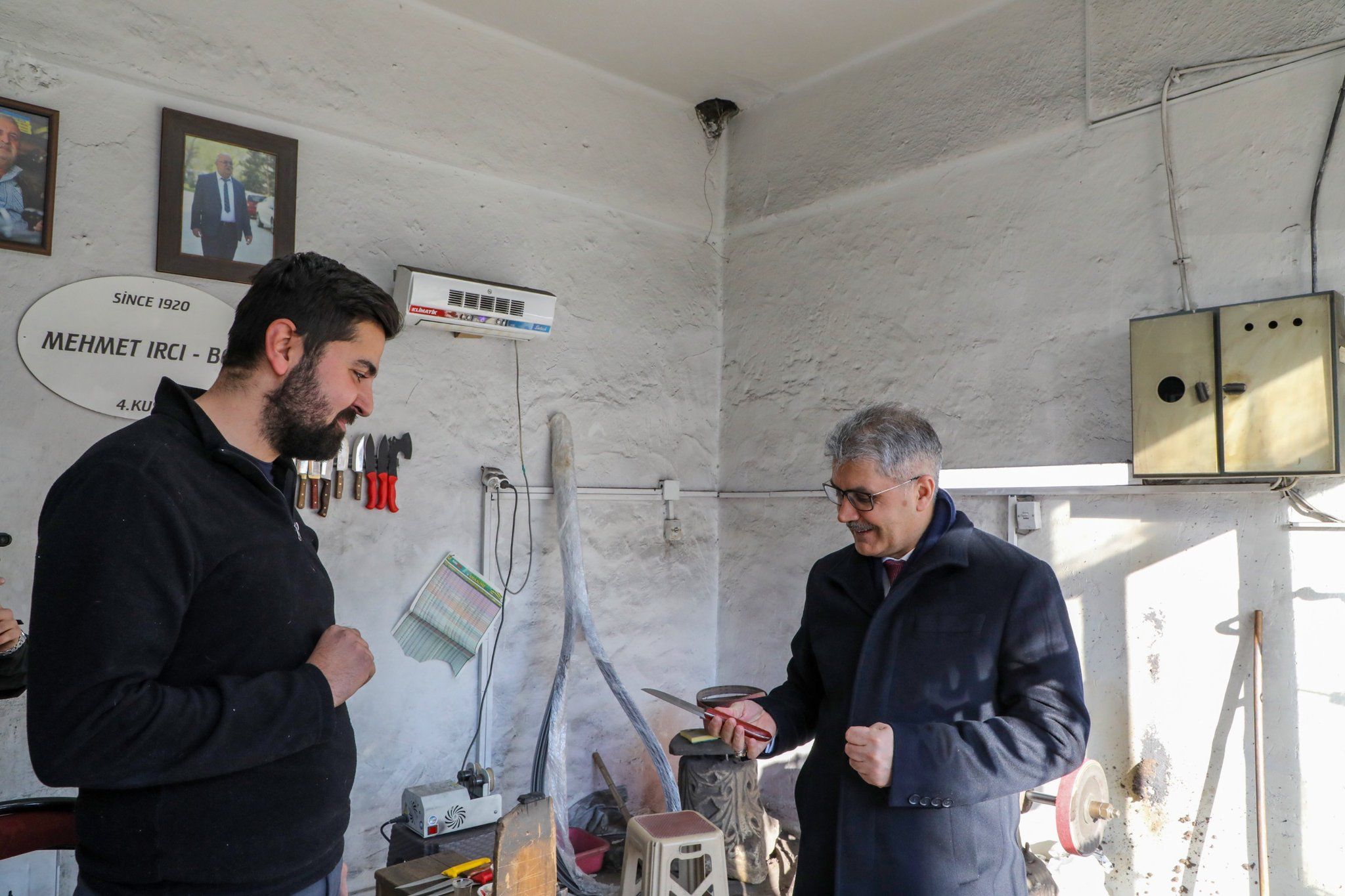 Niğde Valisi Sayın Cahit Çelik, IRCı ailesinin 4. kuşak temsilcisi Mehmet Ircı’yı ziyaret etti. 1920 yılından bu yana bıçak sanatıyla tanınan Ircı ailesinin geleneksel el işçiliğiyle bıçak üreten Mehmet Ircı, Niğde Kalesi altında bulunan dükkanında Valimiz Sayın Cahit Çelik’e ürettiği bıçaklar hakkında bilgi verdi.